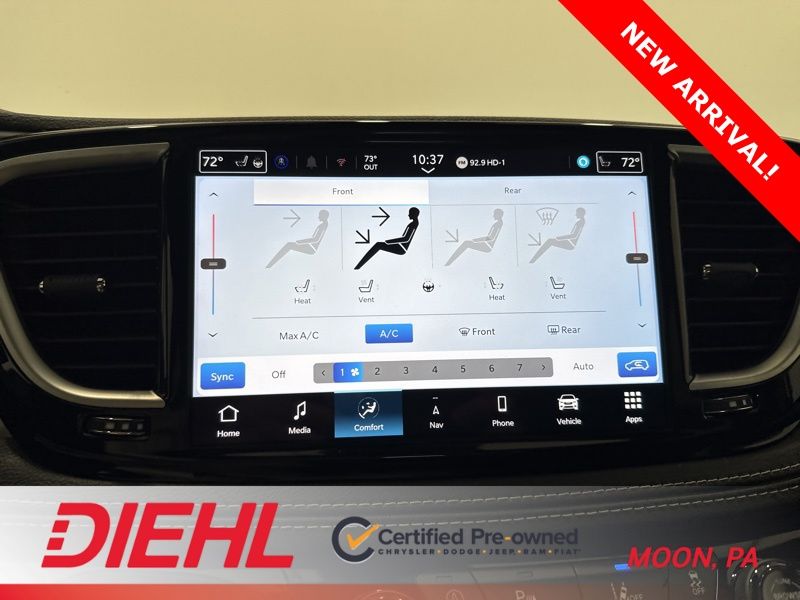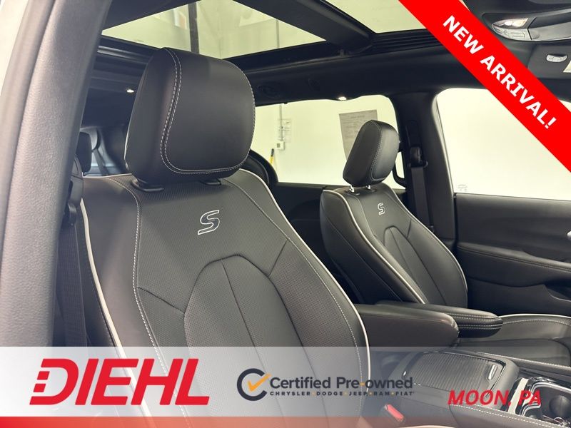 Heated front seats, Heated rear seats, Heated steering wheel, Navigation System, ParkSense Front/Rear Park Assist with Stop, Power Liftgate, Power moonroof, Quick Order Package 27P, S Appearance Package, Safety Sphere, Ventilated front seats. Recent Arrival!