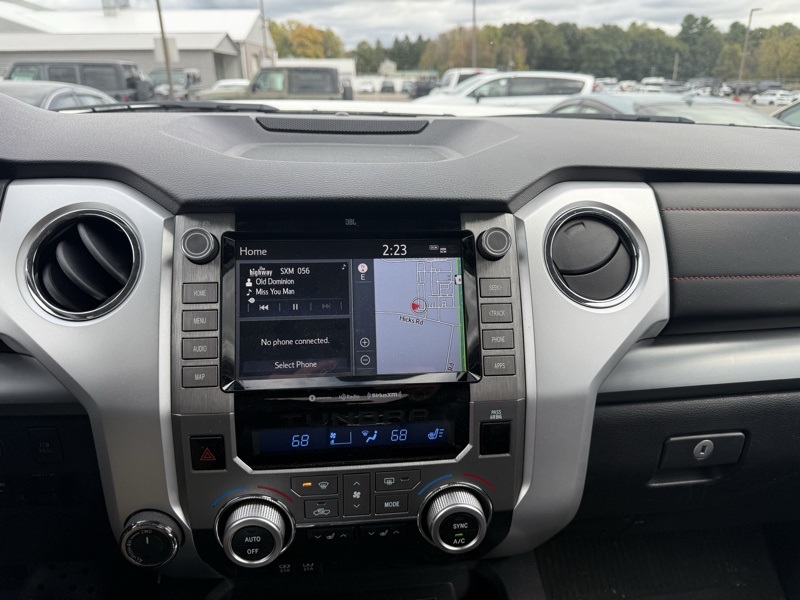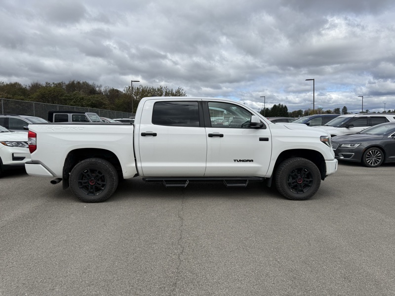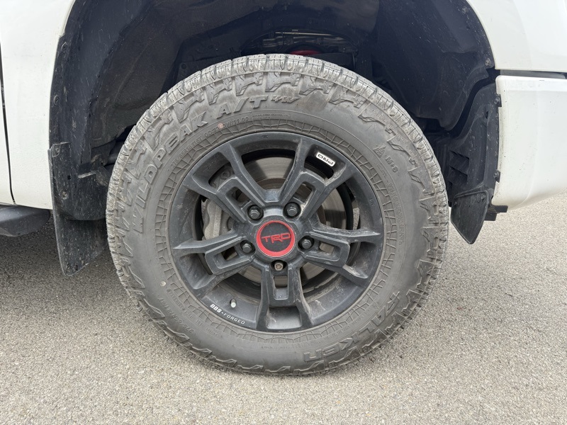 **BLUETOOTH HANDS FREE PHONE**, **LEATHER**, **MOONROOF**, **BACK-UP CAMERA**, **CLEAN CARFAX**, **TRD PRO**, **FACTORY TUBE STEPS**, **PRE COLLISION SYSTEM**, **BLIND SPOT DETECTION**, **ADAPTIVE CRUISE CONTROL**, **PREMIUM JBL STEREO**, **APPLE CARPLAY / ANDROID AUTO**, **38 GALLON FUEL TANK**, 4WD, Black w/Leather Seat Trim or Leather Seat Trim w/TRD Off-Road Package, 12 Speakers, 38 Gallon Fuel Tank Capacity, 4-Wheel Disc Brakes, 4.30 Axle Ratio, ABS brakes, Active Cruise Control, Air Conditioning, All Weather Floor Liner, Alloy wheels, AM/FM radio: SiriusXM, Anti-Theft Immobilizer w/Alarm, Apple CarPlay/Android Auto, Auto High-beam Headlights, Auto-Dimming Rear-View Mirror, Auto-dimming Rear-View mirror, Black Wheel Locks, Brake assist, Bumpers: body-color, Color-Keyed Power Heated Exterior Mirrors, Compass, Deck Rail System, Delay-off headlights, Driver door bin, Driver vanity mirror, Dual front impact airbags, Dual front side impact airbags, Electronic Stability Control, Emergency communication system: Safety Connect with 1-year trial, Exterior Parking Camera Rear, Front anti-roll bar, Front Bucket Seats, Front Bucket Seats w/TRD Pro Logos, Front Center Armrest, Front Door Smart Key System, Front fog lights, Front reading lights, Front wheel independent suspension, Fully automatic headlights, Garage door transmitter: HomeLink, Heated door mirrors, HomeLink Universal Transceiver, Illuminated entry, Knee airbag, Leather Seat Trim (LF), Leather Shift Knob, Low tire pressure warning, Navigation system: Dynamic Navigation (3-year trial), Occupant sensing airbag, Outside temperature display, Overhead airbag, Overhead console, Panic alarm, Passenger door bin, Passenger vanity mirror, Power door mirrors, Power driver seat, Power moonroof, Power passenger seat, Power steering, Power Tilt & Slide Moonroof w/Sliding Sunshade, Power windows, Power Windows w/Front Auto Up/Down, Push Button Starting System, Radio data system, Radio: Premium JBL Audio w/Dynamic Navigation, Rear reading lights, Rear seat center armrest, Rear step bumper, Rear window defroster, Remote Connect, Remote keyless entry, Rigid Industries LED Fog Lights, Safety Connect, Security system, Service Connect, SiriusXM Radio, Speed control, Speed-sensing steering, Split folding rear seat, Steering wheel mounted audio controls, Tachometer, Telescoping steering wheel, Tilt steering wheel, Traction control, TRD Pro Dual Exhaust, TRD Pro Package, TRD Pro Suspension, Trip computer, Variably intermittent wipers, Voltmeter, Wheels: 18" BBS 5-Spoke Satin Black Forged-Alum.. Recent Arrival! Clean CARFAX. Super White 2021 Toyota Tundra TRD Pro 4WD 6-Speed Automatic Electronic i-Force 5.7L V8 DOHC 32V LEV