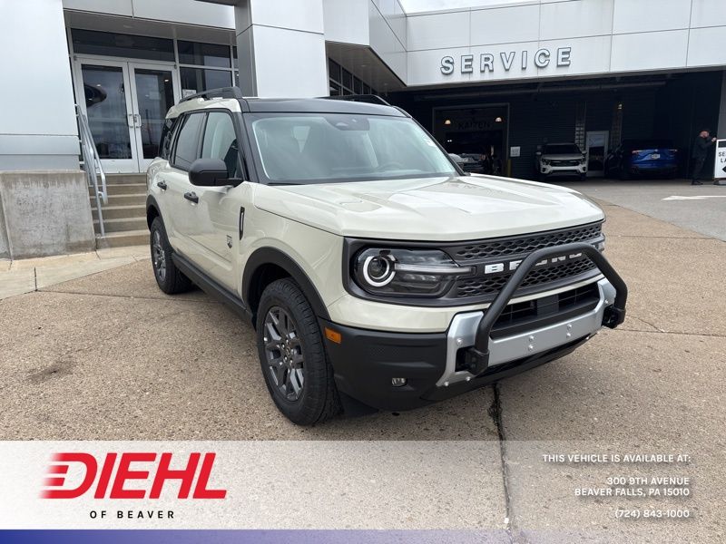 This 2025 Ford Bronco Sport in Desert Sand looks ready to conquer both the concrete jungle and the muddy backroads of Beaver County. The moment you see that distinctive stance and rugged tone, you know this isn't your average SUV, it's adventure on four wheels. With the Black Diamond Off-Road Package, this Bronco Sport steps it up with all-terrain tires, rubberized seat backs, and off-road gear that make weekend exploring as easy as your weekday commute near Pittsburgh.