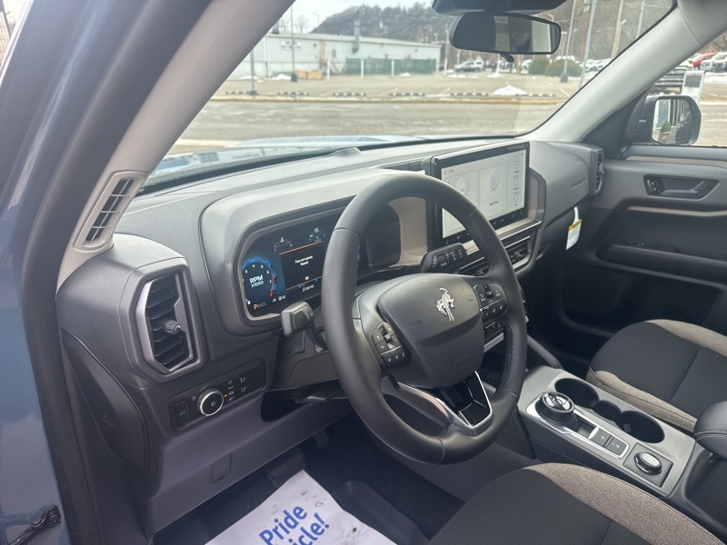 Adventure doesn't have to wait for the weekend it just needs the right set of wheels. Meet the 2025 Ford Bronco Sport Big Bend Black Diamond Edition, dressed in striking Azure Gray Metallic Tri-Coat and built to make every trailer Target parking lot feel like uncharted territory. With its rugged 17-inch Carbonized Gray wheels wrapped in Continental All-Terrain tires and the HOSS 1.0 off-road tuned suspension, this SUV is as comfortable splashing through Beaver County mud as it is cruising the streets near Pittsburgh.
