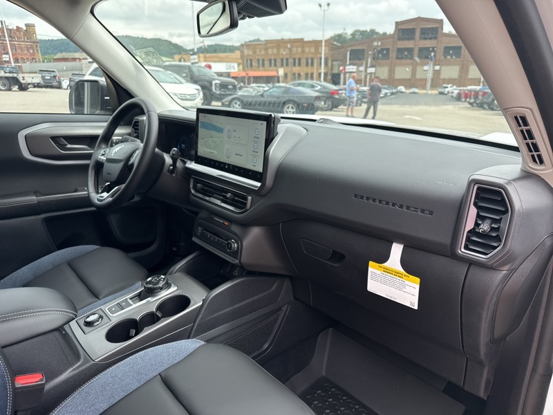 This 2025 Ford Bronco Sport Outer Banks in Oxford White proves that adventure and refinement can absolutely share the same garage. With its sharp 18-inch machined-face black aluminum wheels and Platinum Blue Unstoppable cloth interior, this Bronco Sport is every bit as stylish as it is capable. Its powered by the punchy 1.5L EcoBoost engine paired with an 8-speed automatic transmission, giving you a confident mix of power and efficiency whether you're navigating Beaver County backroads or heading into the city near Pittsburgh.