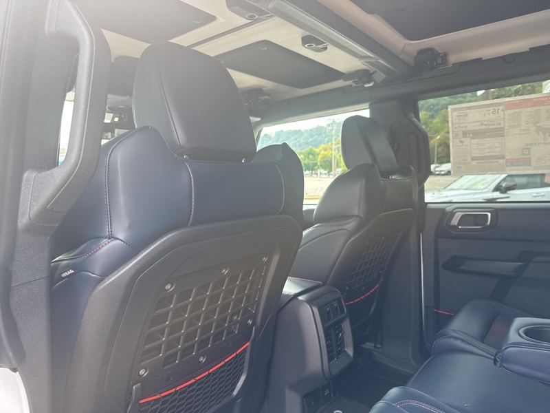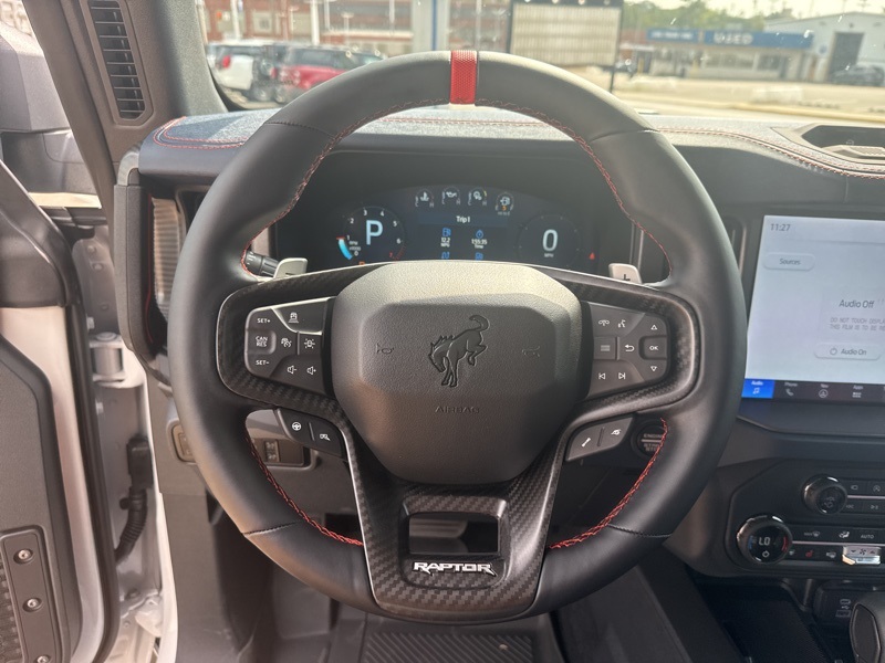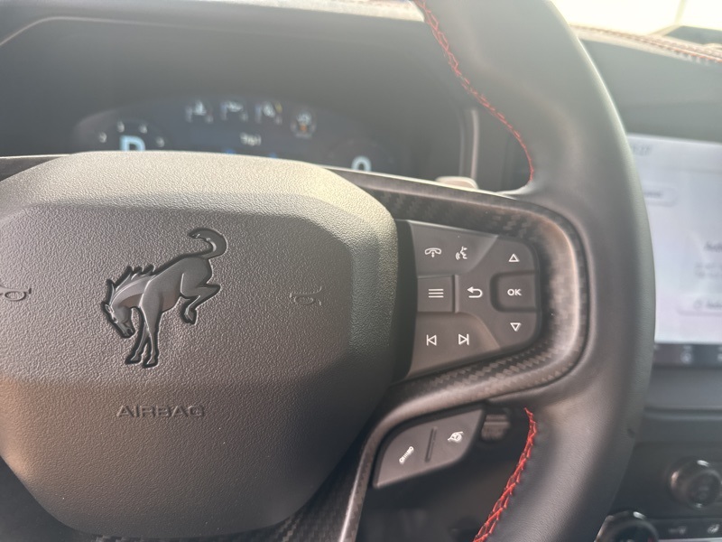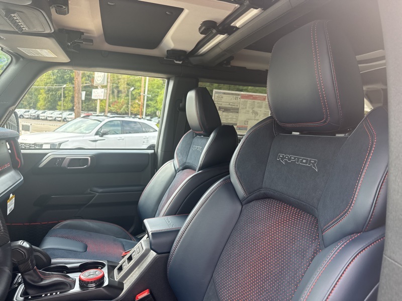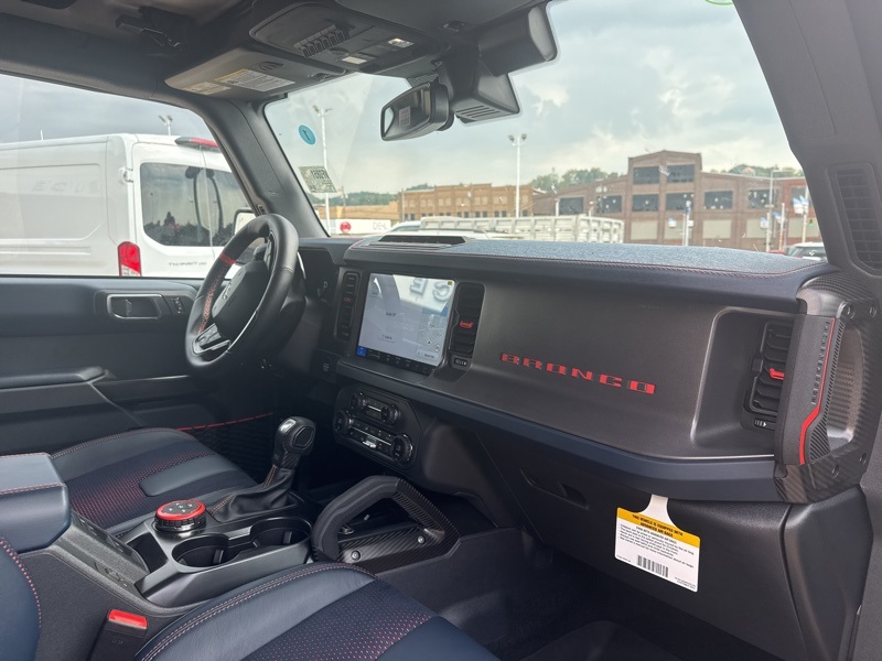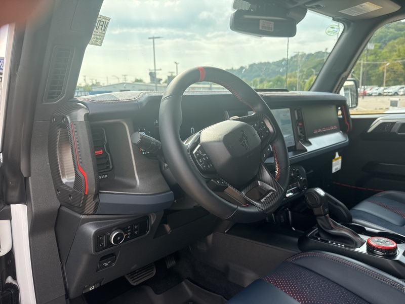 Inside, it's a command center of luxury and technology. Leather-trimmed suede seats with Raptor stitching keep you planted while the digital cluster and massive 12-inch touchscreen keep you informed and entertained. The B&O 12-speaker sound system turns every engine roar into a symphony, while the carbon fiber interior trim and paddle shifters remind you this Bronco plays in the supercar league. With Ford Co-Pilot360, adaptive cruise control, a 360-degree camera, and the Lux Package, it's as intelligent as it is intense.