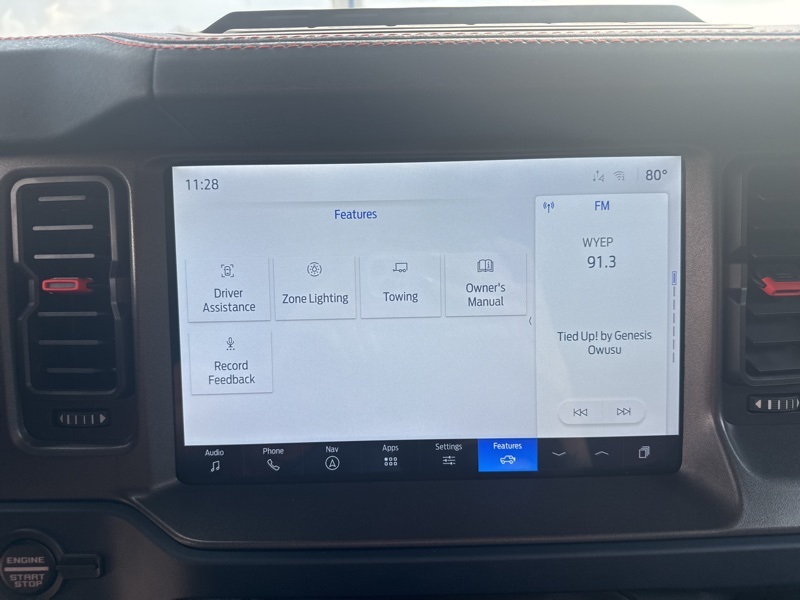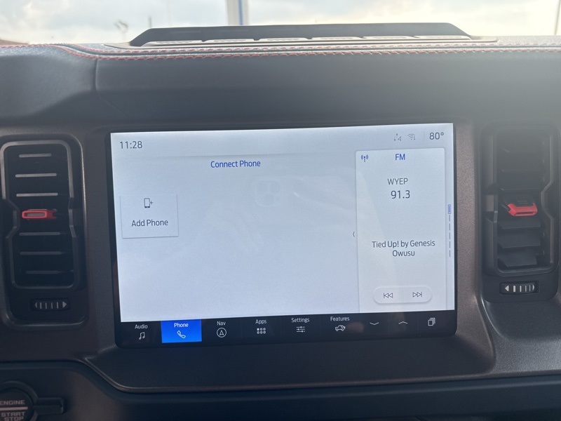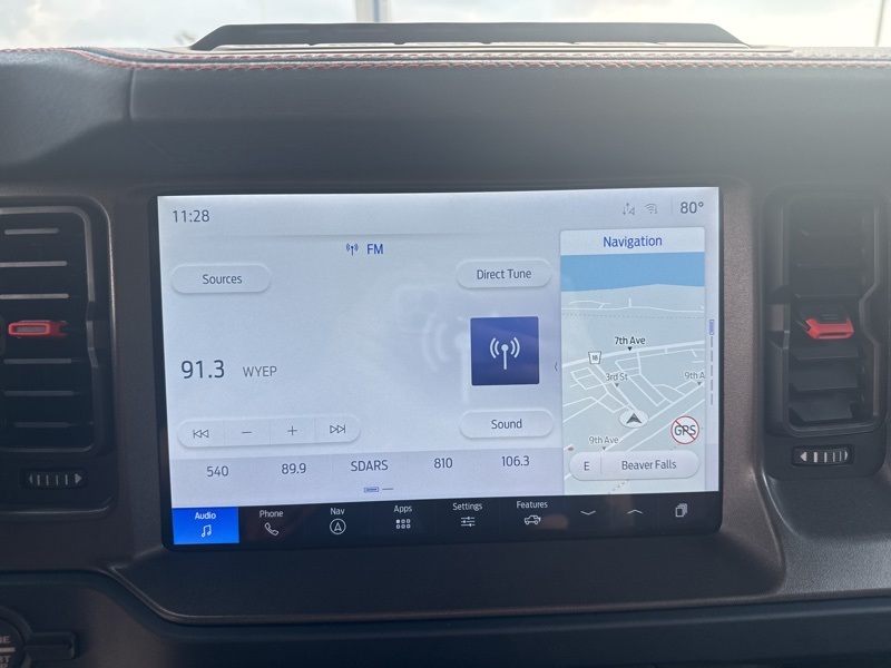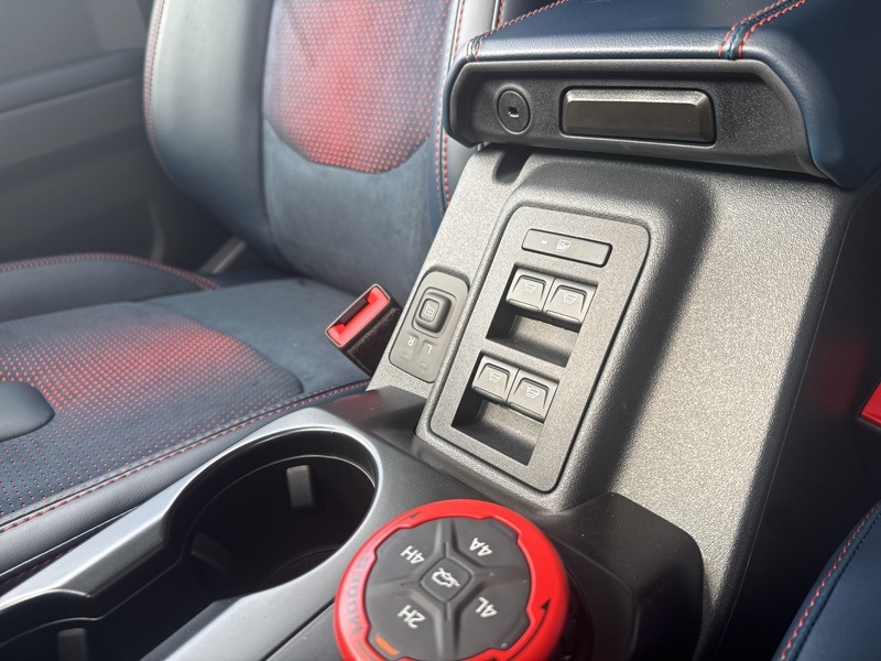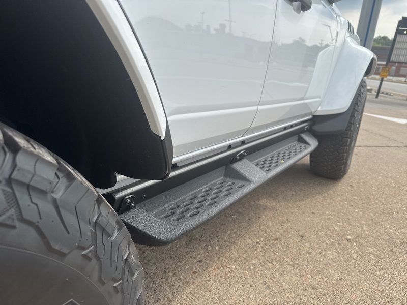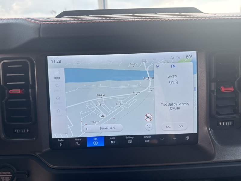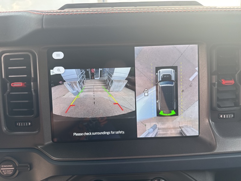 Inside, it's a command center of luxury and technology. Leather-trimmed suede seats with Raptor stitching keep you planted while the digital cluster and massive 12-inch touchscreen keep you informed and entertained. The B&O 12-speaker sound system turns every engine roar into a symphony, while the carbon fiber interior trim and paddle shifters remind you this Bronco plays in the supercar league. With Ford Co-Pilot360, adaptive cruise control, a 360-degree camera, and the Lux Package, it's as intelligent as it is intense.