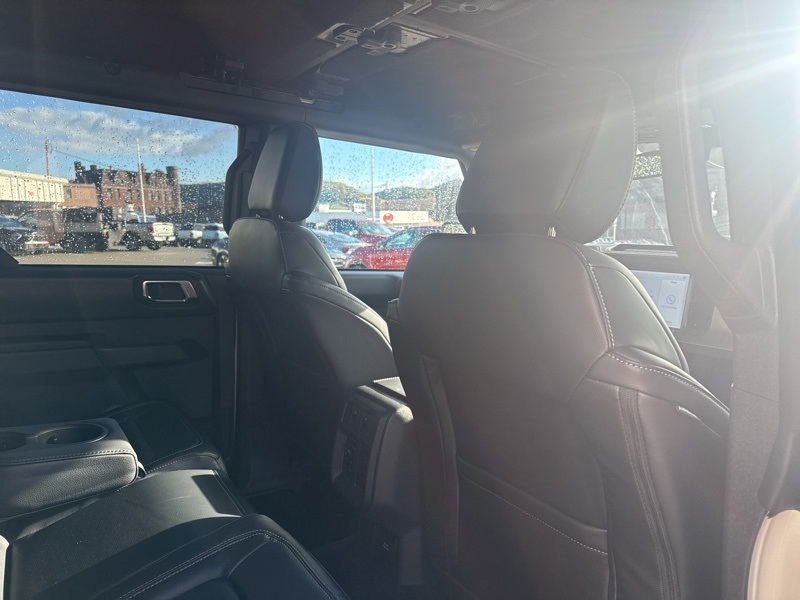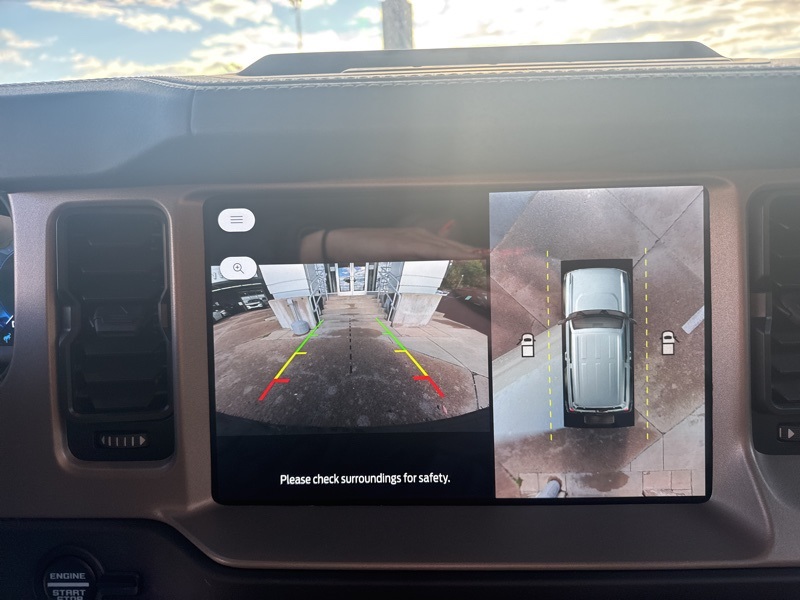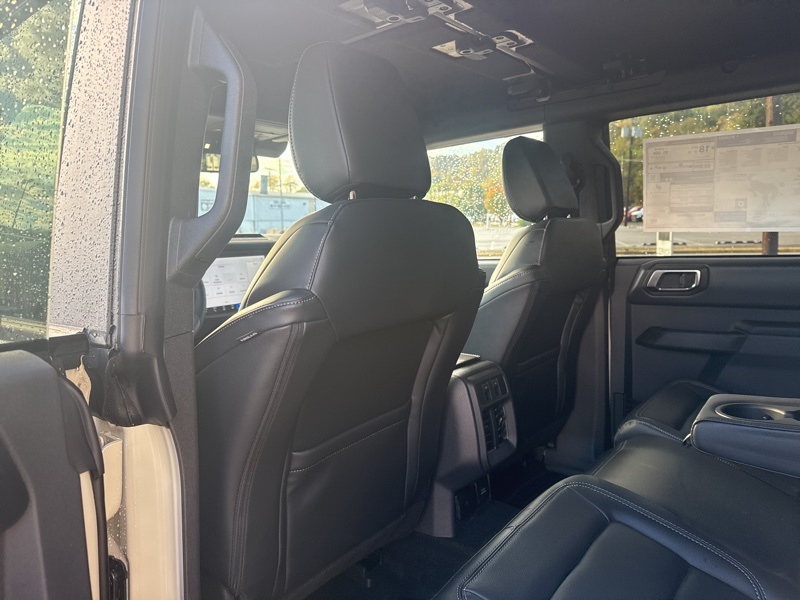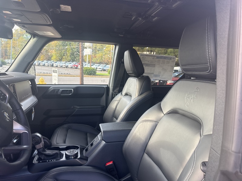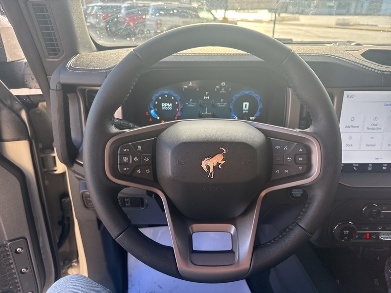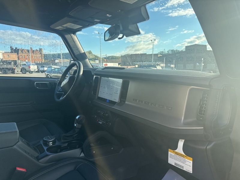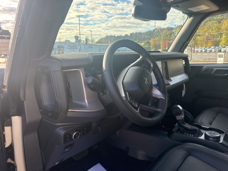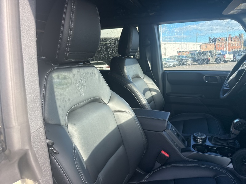 Step inside, and the story changes from rugged to refined. The leather-trimmed vinyl seats are both durable and upscale, complemented by dual-zone climate control, heated front seats, and carpeted flooring for a touch of everyday luxury. A massive 12-inch touchscreen running SYNC 4 with connected navigation puts the world at your fingertips, and the 12-speaker B&O sound system turns every road into a private concert hall. Add in Ford Co-Pilot360, adaptive cruise control, and a 360-degree camera, and you've got a Bronco that's as smart as it is strong.