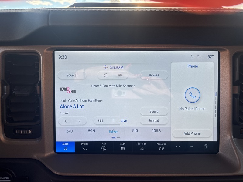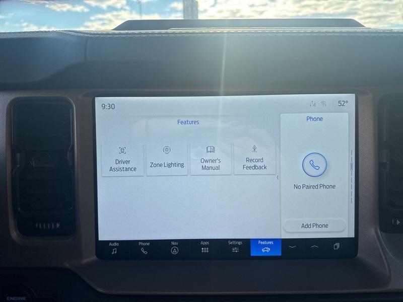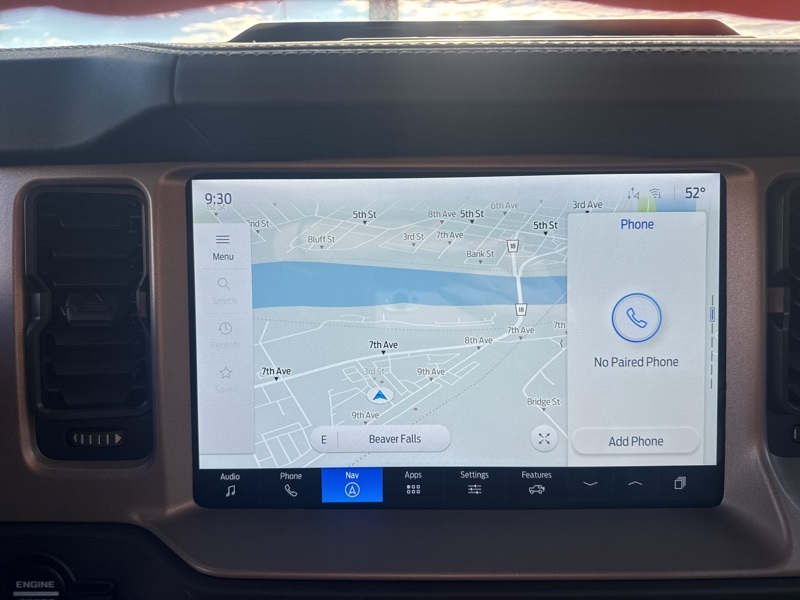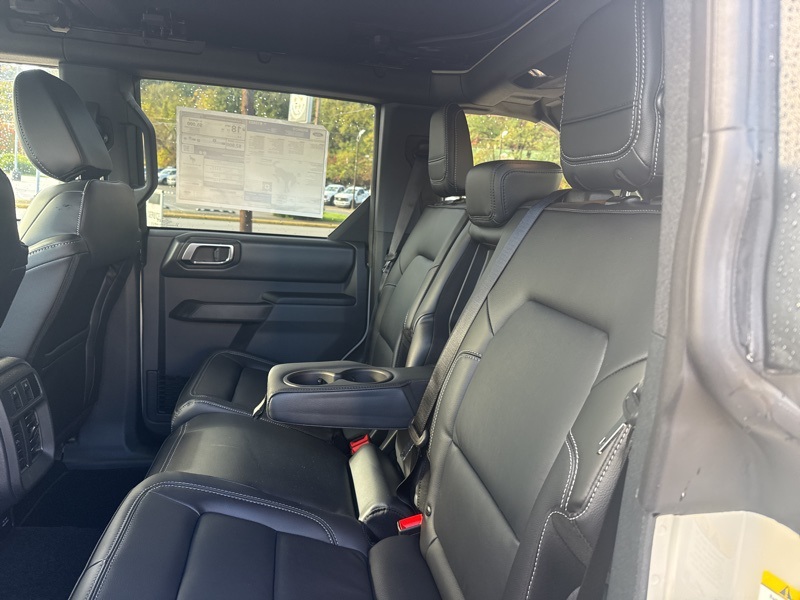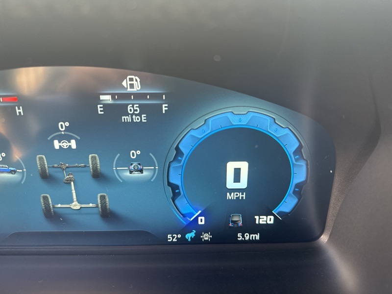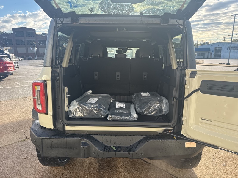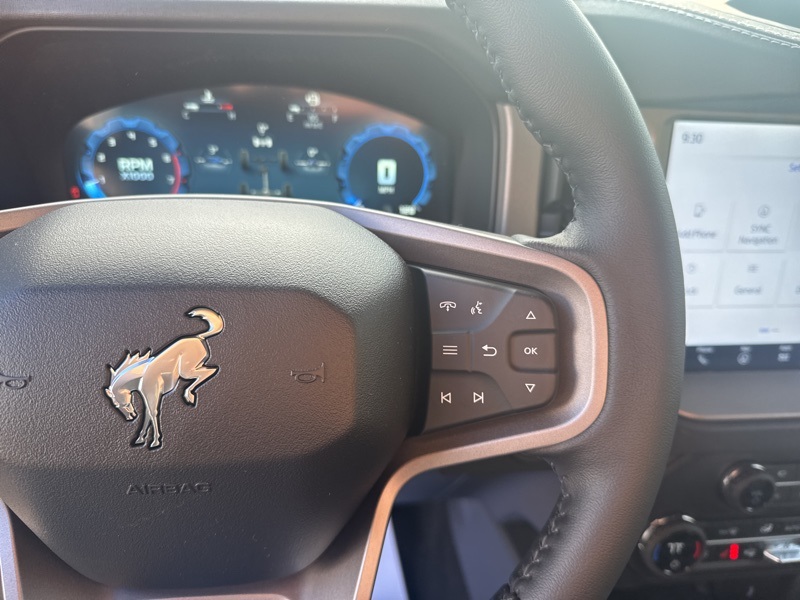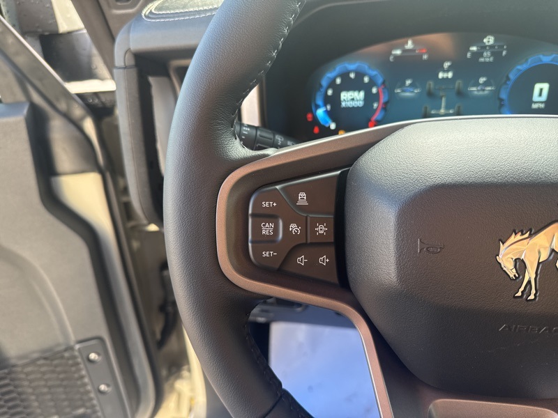 Step inside, and the story changes from rugged to refined. The leather-trimmed vinyl seats are both durable and upscale, complemented by dual-zone climate control, heated front seats, and carpeted flooring for a touch of everyday luxury. A massive 12-inch touchscreen running SYNC 4 with connected navigation puts the world at your fingertips, and the 12-speaker B&O sound system turns every road into a private concert hall. Add in Ford Co-Pilot360, adaptive cruise control, and a 360-degree camera, and you've got a Bronco that's as smart as it is strong.