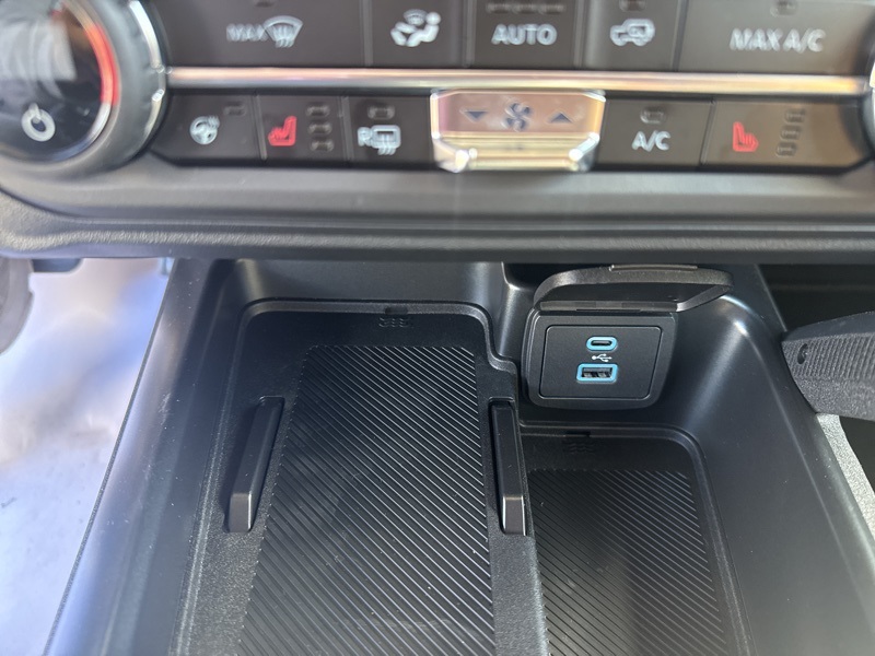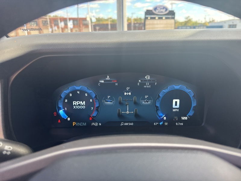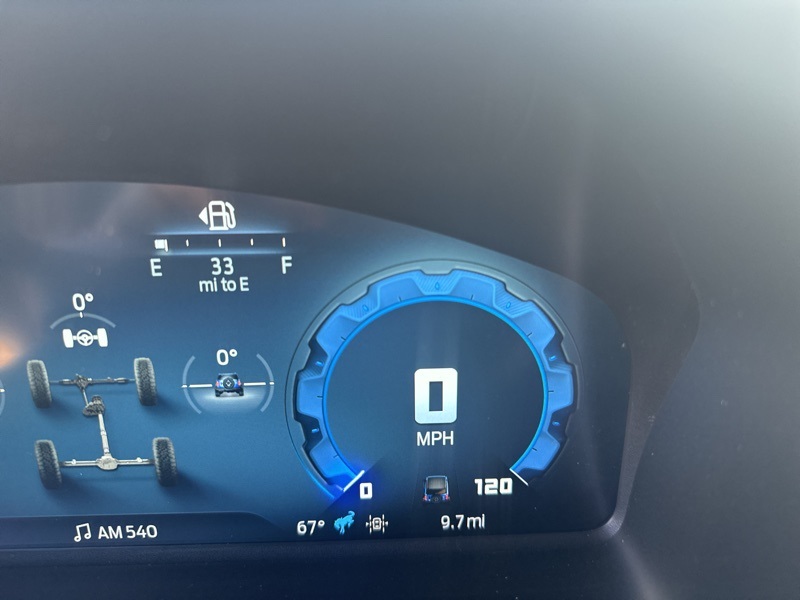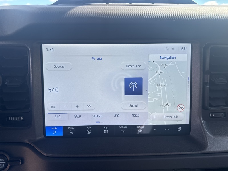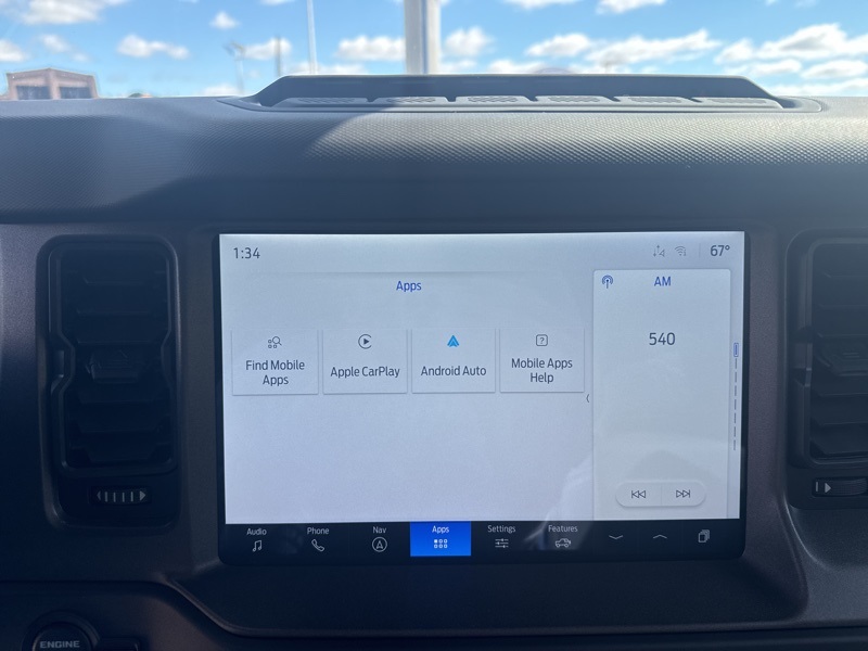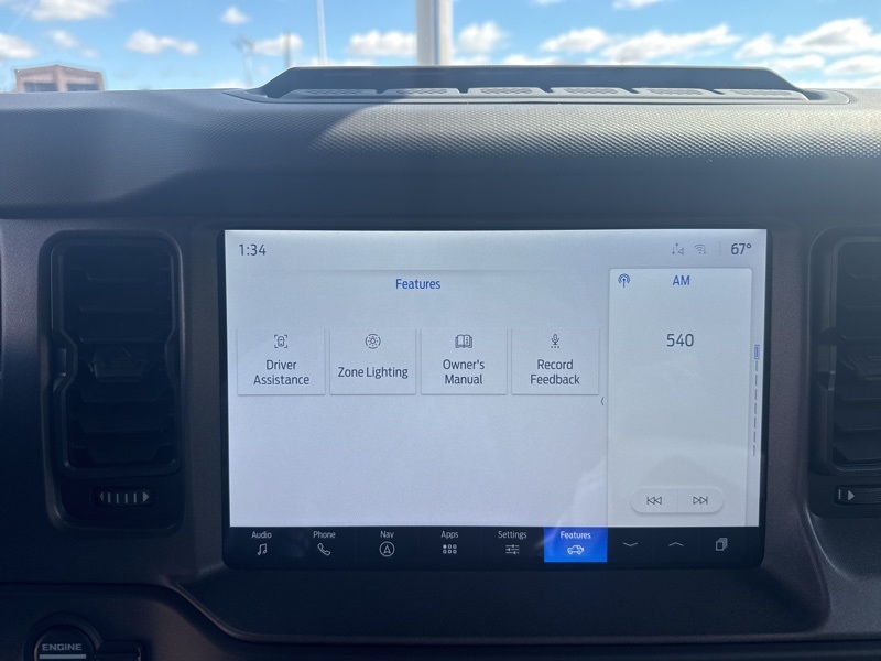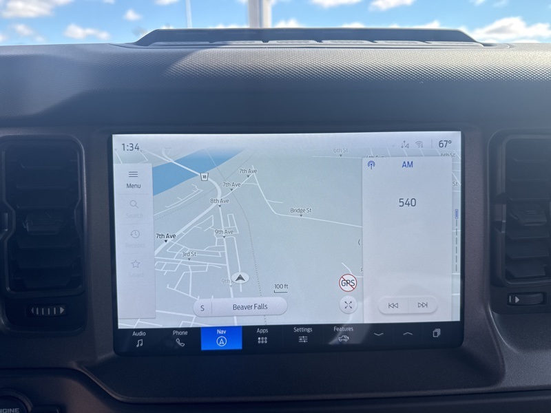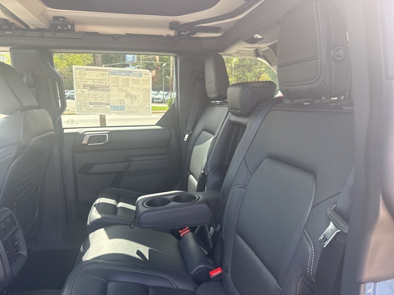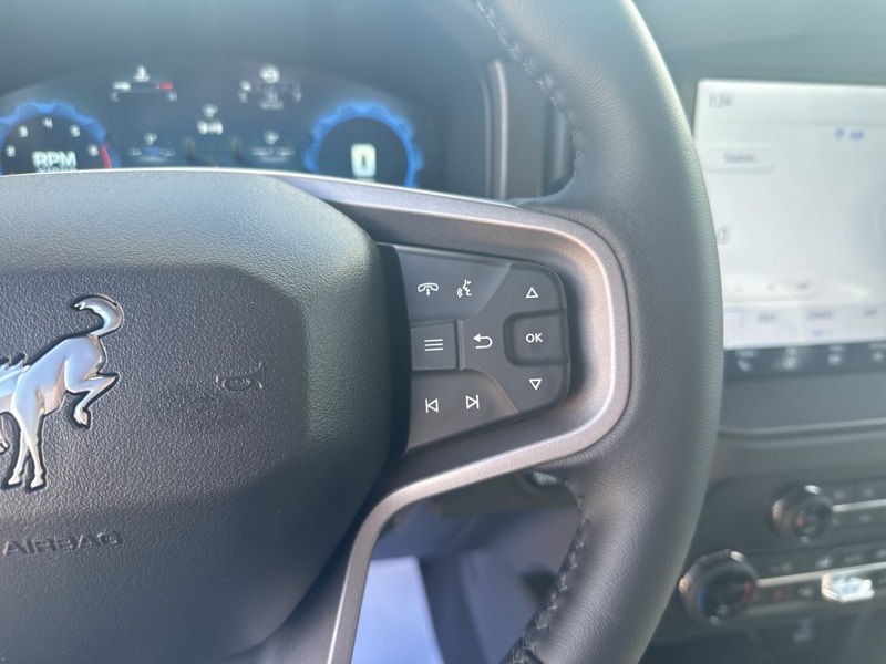 Inside, its all business - black Onyx vinyl seats built to take a beating and wipe clean after your latest trail victory. But rugged doesn't mean rough. You still get heated front seats, dual-zone electronic climate control, and a 12-inch touchscreen with SYNC 4, built-in navigation, and a premium 12-speaker B&O sound system that turns every ride into a concert on wheels. The digital cluster, leather-wrapped wheel, and MOLLE strap system blend tech and toughness like only a Bronco can.