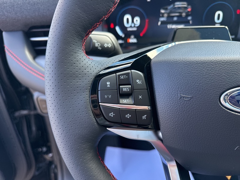This ST-Line is loaded with features that make every drive a pleasure. The Premium Package adds second-row heated seats, ambient lighting, a wireless charging pad, and a panoramic Vista Roof that lets in all the light (and a little extra attitude). The 13.2-inch touchscreen with B&O 10-speaker sound system makes your cabin feel more like a concert hall, while Fords Co-Pilot360 Active 2.0 and BlueCruise hands-free driving tech keep every mile effortless and secure.