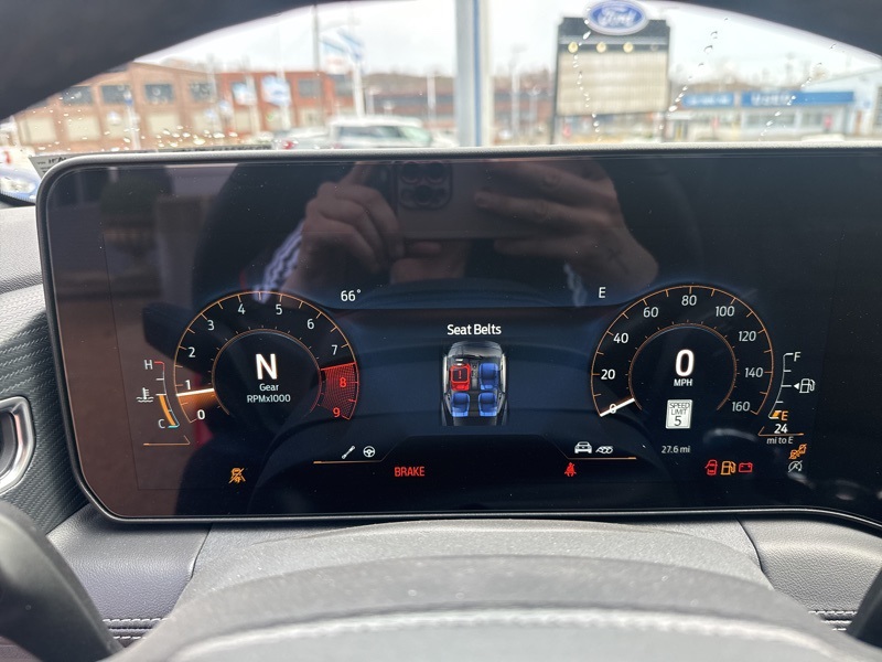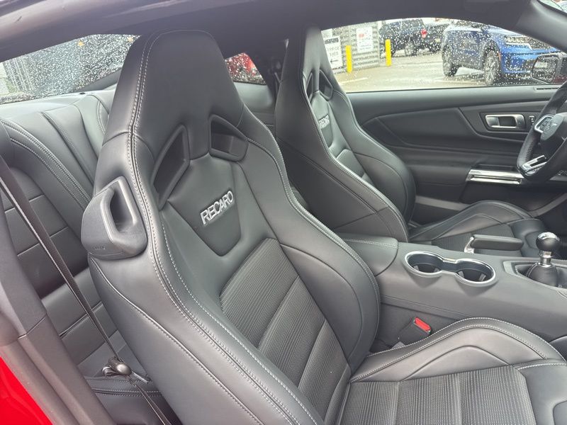 Inside, the Black Onyx leather-trimmed interior with factory Recaro seats locks you in and keeps you connected to the road. The massive 12.4-inch digital cluster and 13.2-inch center touchscreen deliver a modern cockpit feel, while the B&O sound system makes sure the music hits just as hard as the exhaust note. The Nite Pony Package adds blacked-out wheels and roof accents, giving this Mustang an aggressive edge that perfectly matches its performance-first personality.