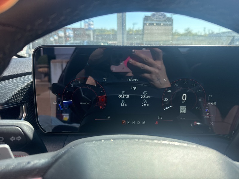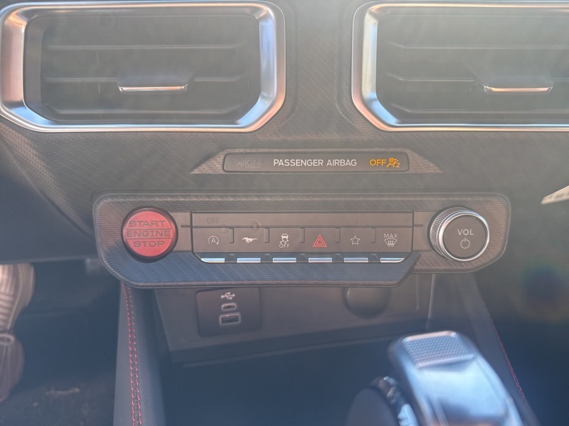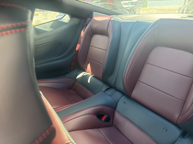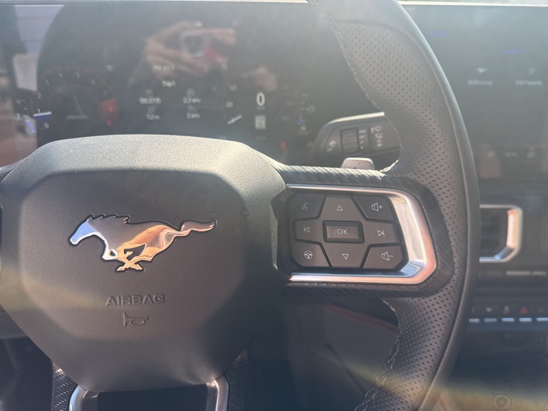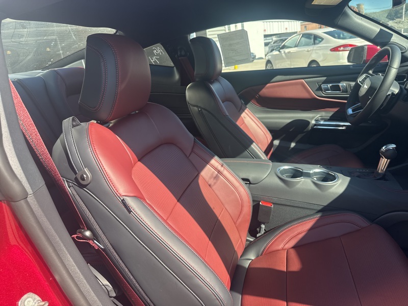 Slide inside and you'll find red leather-trimmed seats that make the cabin feel like a sports lounge designed by adrenaline itself. Dual-zone automatic climate control, a heated leather steering wheel, and the ambient lighting with MyColor let you tailor the vibe to every drive. The massive 13.2-inch touchscreen and 12.4-inch digital cluster blend old-school muscle with new-school tech, all powered by SYNC 4 and Connected Navigation. Add in Ford Co-Pilot360 Assist+, and you've got brains to match the brawn, adaptive cruise, lane centering, and pre-collision assist keep things smooth when the road gets wild.