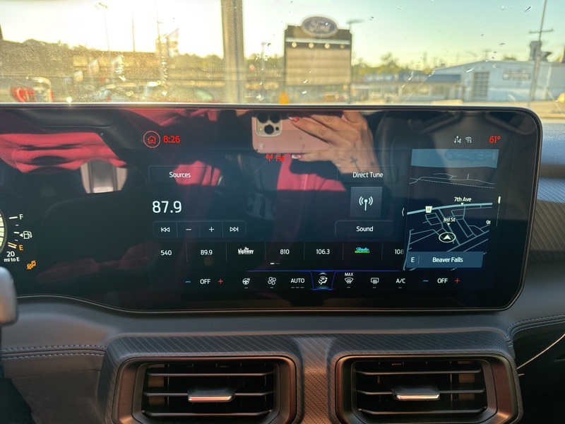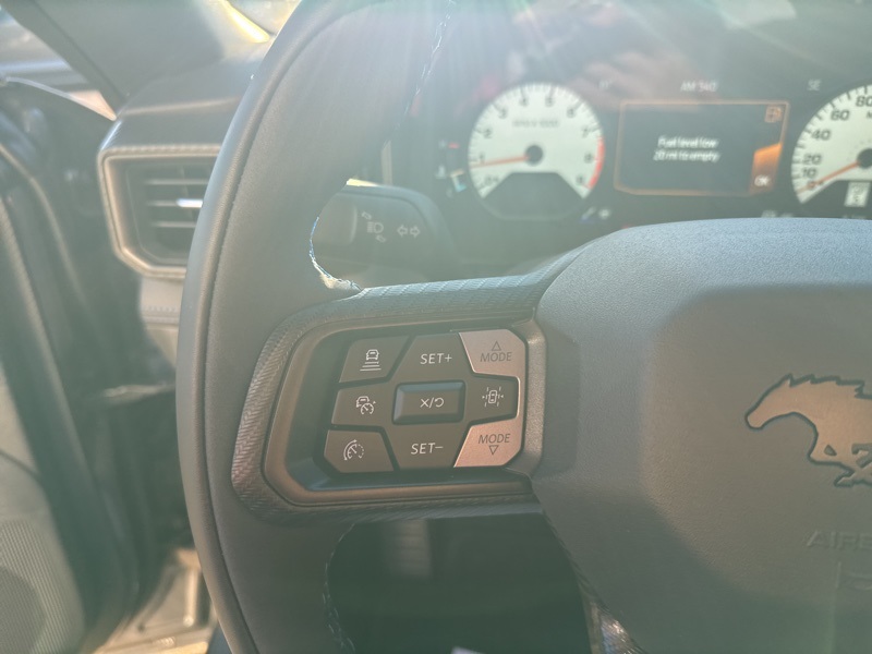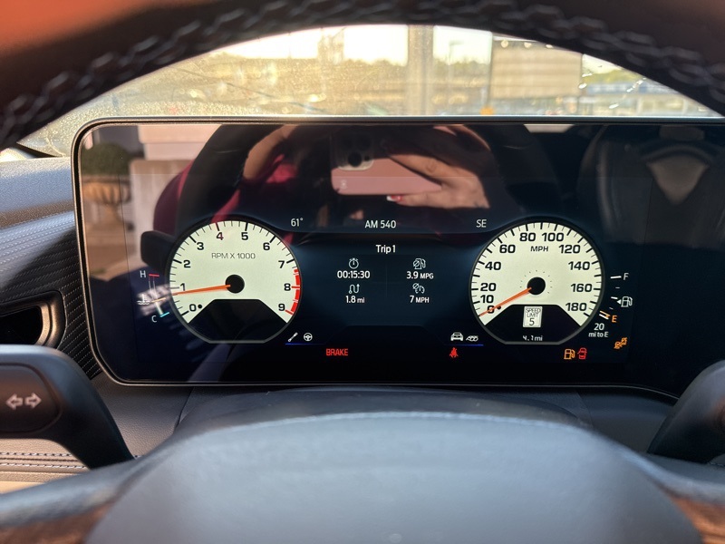 Inside, the cockpit feels like a fighter jet met a luxury suite. You get a 12.4-inch digital instrument cluster, a 13.2-inch SYNC 4 touchscreen, ambient lighting with MyColor, and that wickedly fun electronic drift brake for when your inner Ken Block takes over. The B&O 12-speaker sound system fills the cabin when you need a soundtrack worthy of this machine. Safety and smarts come standard too, with Ford Co-Pilot360 Assist+, adaptive cruise, and lane keeping, so even on the daily drive through Beaver, PA, this car behaves.....mostly.