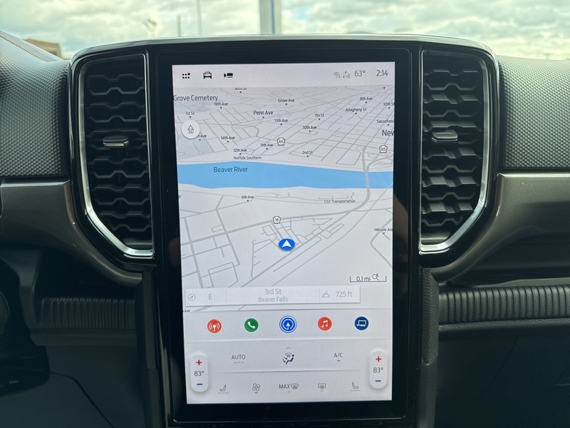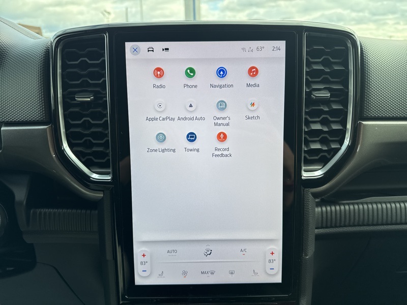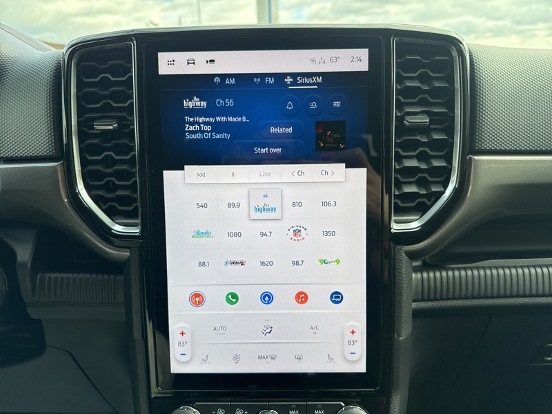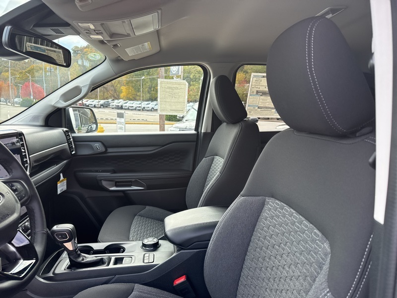 Inside, the Ranger blends rugged durability with modern comfort. The Ebony cloth seats and carpet flooring keep things clean and comfortable, while the power sliding rear window and dual-zone electronic climate control make every drive feel tailored just for you. SYNC 4A with Connected Navigation and SiriusXM keeps you plugged in, while Ford Co-Pilot360 adds a layer of confidence with features like BLIS, Lane-Keeping, and Pre-Collision Assist. The 120V power outlets, both in-cab and in-bed, make it perfect for job sites, tailgates, or camping trips under the stars.