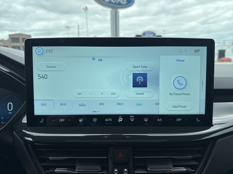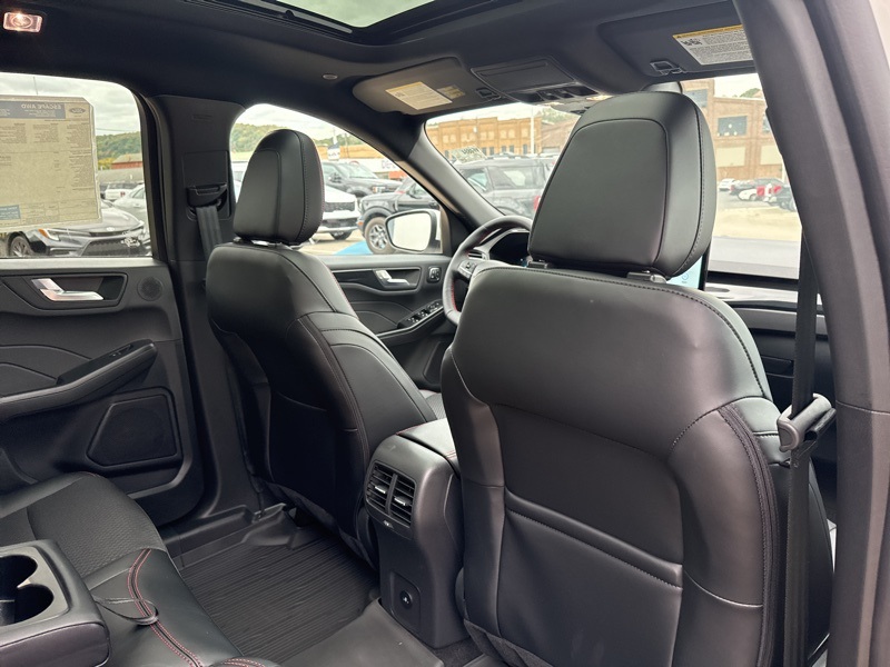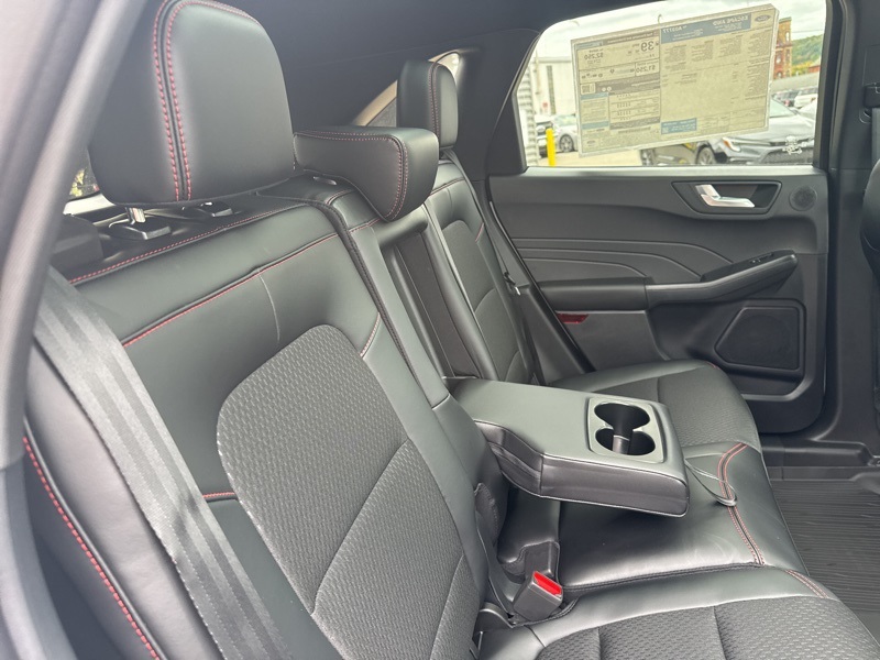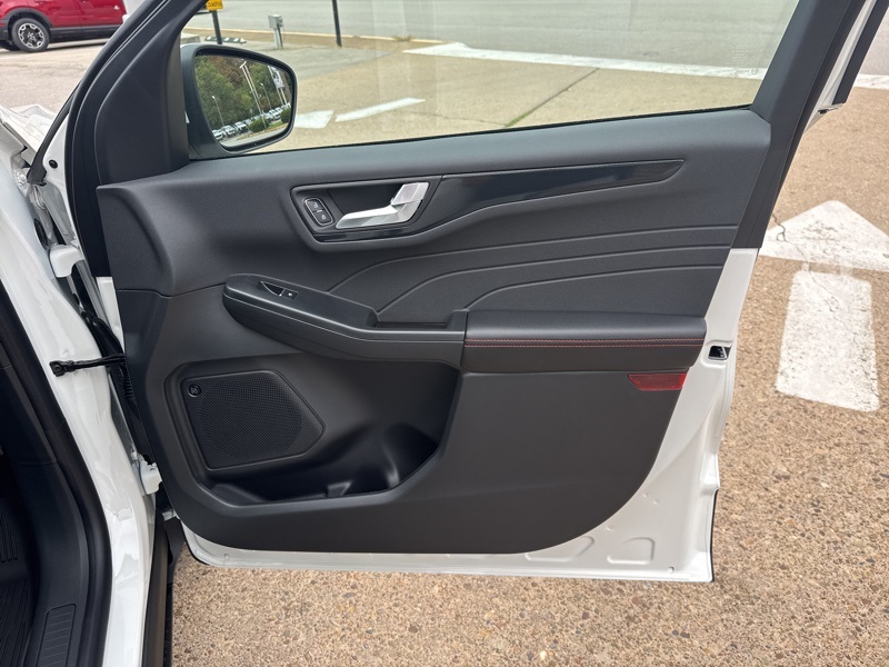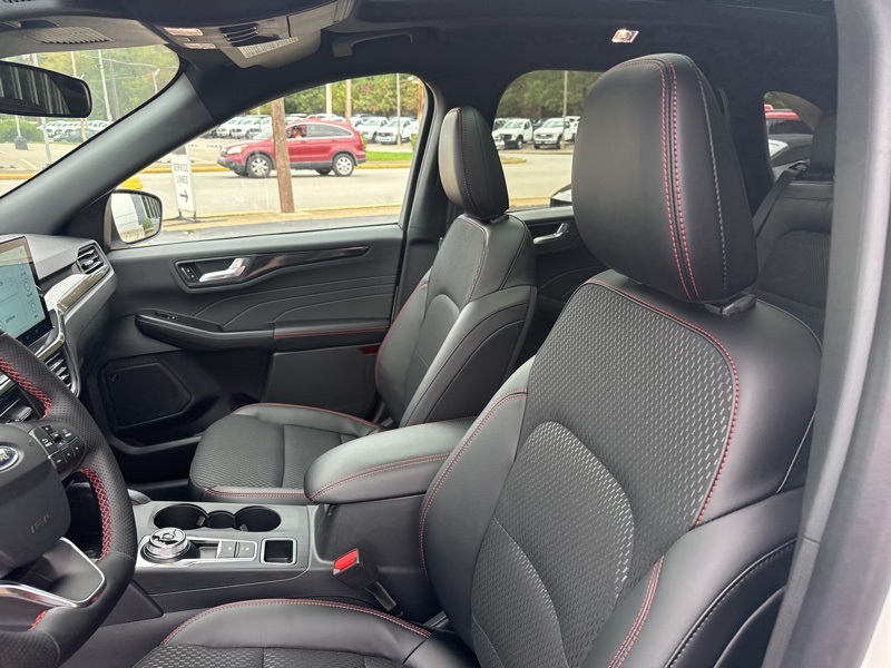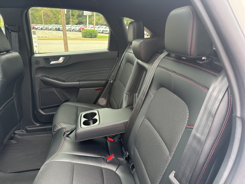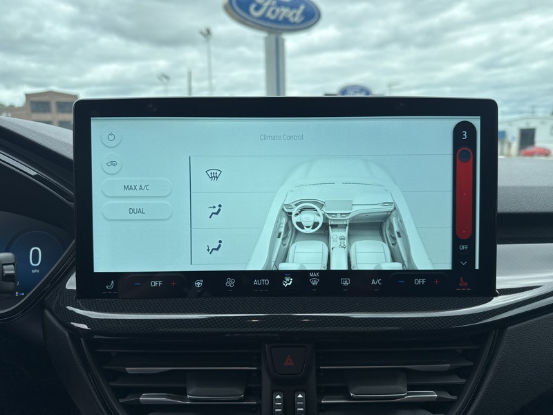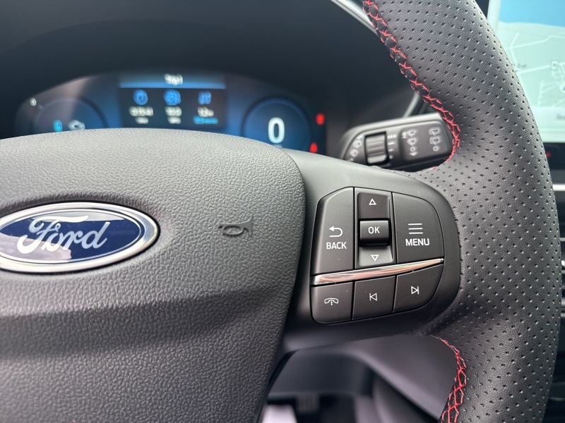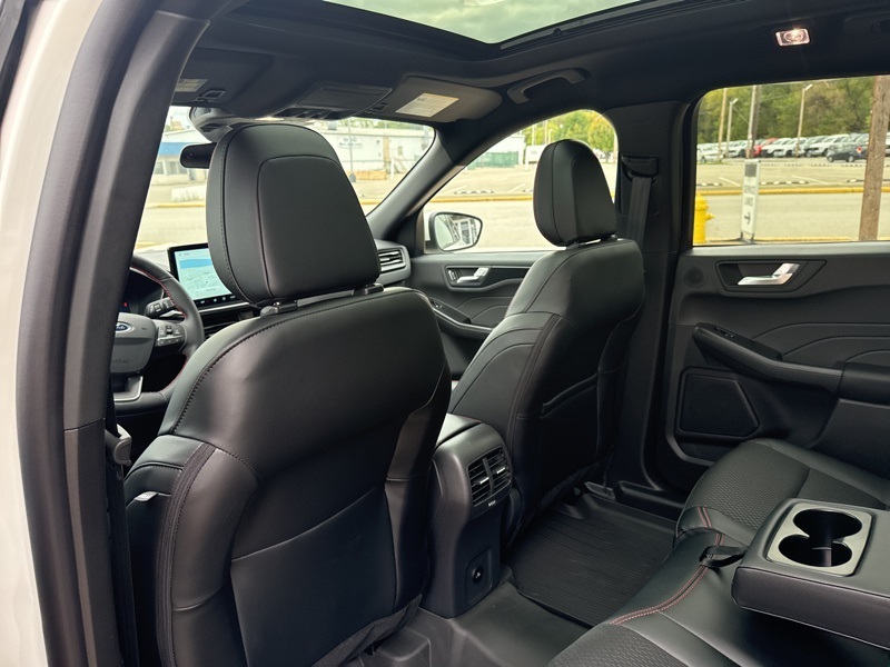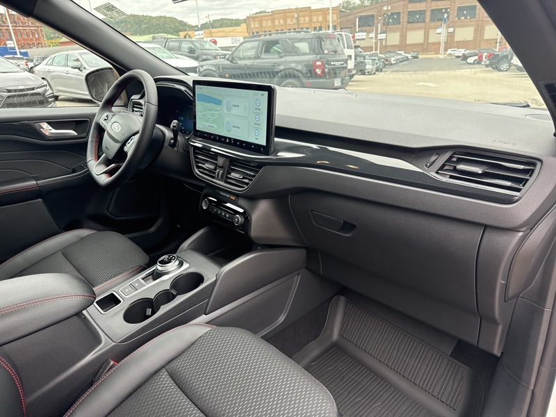 The ST-Line flair is everywhere from the black mesh grille and red stitching inside to the sporty rear spoiler and 18-inch Rock Metallic wheels outside. Step inside, and the Ebony interior with partial vinyl and cloth seats hits the perfect balance of sporty and sophisticated. Heated front sport buckets, a flat-bottom leather steering wheel, and dual-zone climate control make every commute feel like your own private escape.