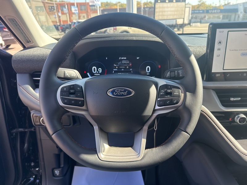 Step inside and you'll find a cabin designed for both comfort and connection. The Dark Space Gray cloth interior feels modern and inviting, with heated front seats, a power drivers seat, and a fold-flat third row that turns passengers into cargo space in seconds. At the heart of it all sits Fords massive 13.2-inch touchscreen with the new Ford Digital Experience complete with Google Maps, Play Store access, and wireless Apple CarPlay and Android Auto. A 12.3-inch digital cluster keeps everything right in your line of sight, while Ford Co-Pilot360 Assist+ and selectable drive modes make every trip as safe as it is smooth.
