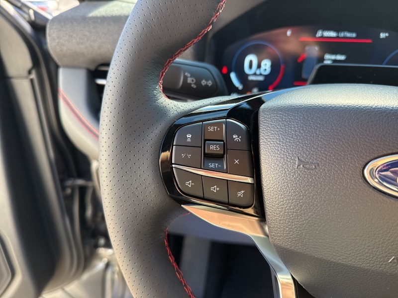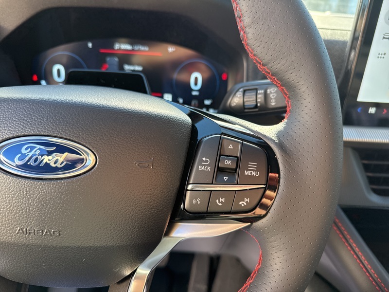 Inside, the Onyx interior with red stitching gives off pure performance energy. Heated front seats, a heated leather-wrapped steering wheel, and power driver and passenger seats make comfort just as important as style. The 13.2-inch touchscreen and 12.3-inch digital cluster keep tech front and center with the new Ford Digital Experience, featuring Google Maps, Play Store, wireless Apple CarPlay, and Android Auto. The 10-speaker B&O Sound System turns every drive into a front-row concert, while BlueCruise hands-free driving brings a new level of ease to your commute.