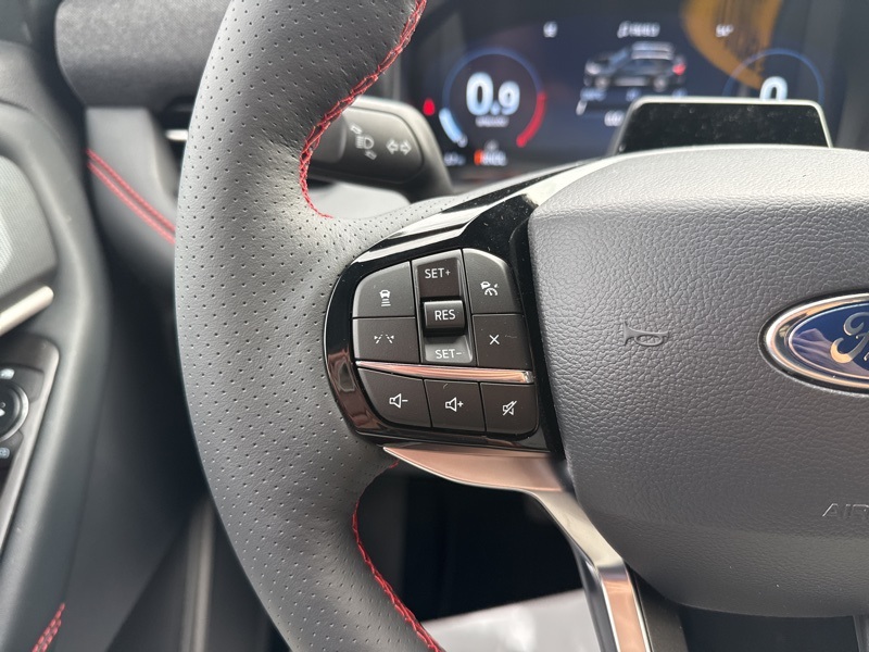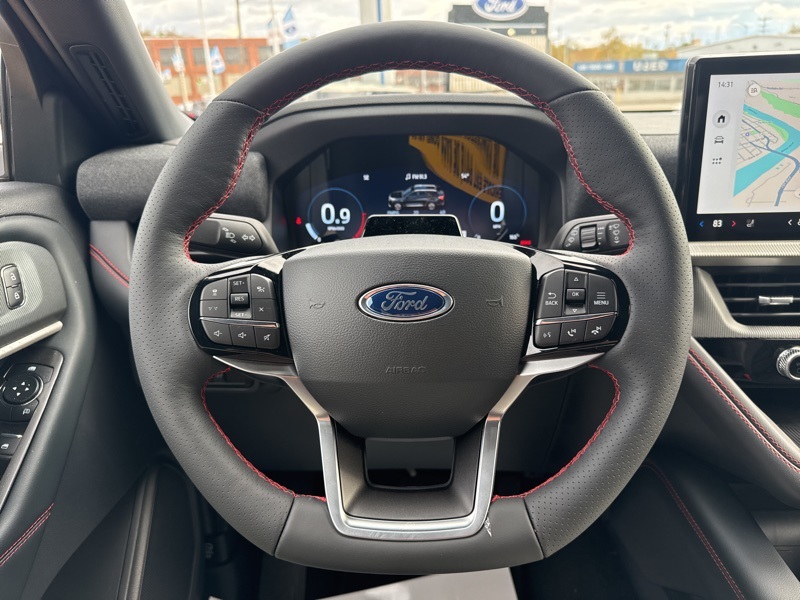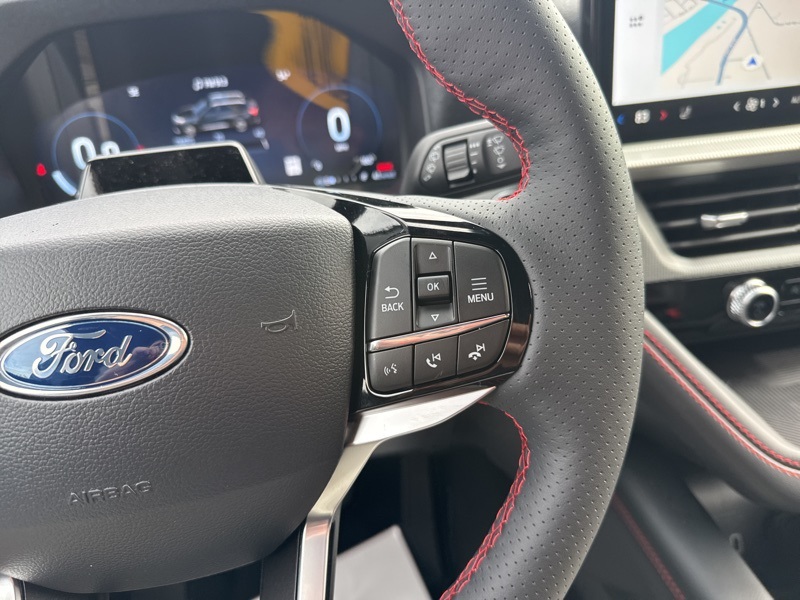 Step inside and the mood shifts from bold to downright exhilarating. The Onyx interior with red stitching and unique cloth inserts sets a sporty tone, while heated front seats and a heated leather-wrapped steering wheel add luxury to every drive. Dual power front seats, a 12.3-inch digital cluster, and Fords new 13.2-inch touchscreen keep comfort and tech perfectly aligned. The Ford Digital Experience with Google Maps, Play Store, and wireless Apple CarPlay or Android Auto turns your cabin into a command center. And with the 10-speaker B&O Sound System, even your playlists sound like they got a performance tune-up.