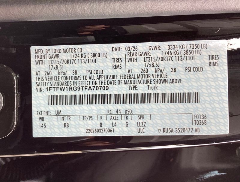 4WD. 2026 Ford F-150 Agate Black Metallic Raptor 4WD 3.5L V6 EcoBoost High Output 10-Speed Automatic