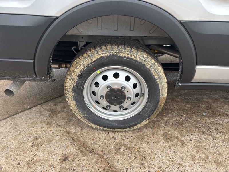 The high roof and 148 inch wheelbase give you outstanding cargo volume, and this one comes dialed in from the factory. A lockable bulkhead keeps your cab quiet and secure, while the full wall liner kit, heavy duty cargo floor covering, and scuff plate kit protect your investment from daily abuse. The General Contractor Package combined with the Upfitter Package adds dual batteries, auxiliary fuse panel, modified wiring system, and large center console, making this Transit ideal for shelving, tool storage, and custom commercial builds. The extended 31 gallon fuel tank and Pro Power Onboard 400 watt system mean fewer stops and more productivity.