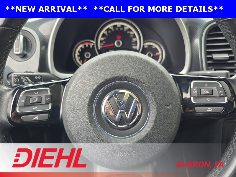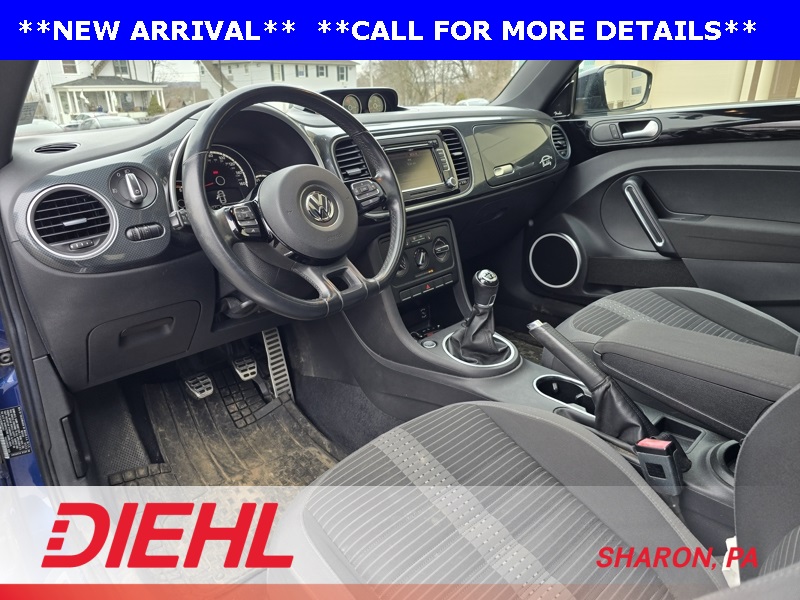 Black Cloth, 4-Wheel Disc Brakes, ABS brakes, Air Conditioning, Alloy wheels, Bodyside moldings, Brake assist, Bumpers: body-color, CD player, Driver door bin, Driver vanity mirror, Dual front impact airbags, Dual front side impact airbags, Electronic Stability Control, Emergency communication system: Car-Net, Four wheel independent suspension, Front anti-roll bar, Front Bucket Seats, Front Center Armrest w/Storage, Front fog lights, Front reading lights, Heatable Sport Front Seats, Heated door mirrors, Heated front seats, Illuminated entry, Leather Shift Knob, Leather steering wheel, Low tire pressure warning, Occupant sensing airbag, Outside temperature display, Overhead console, Panic alarm, Passenger door bin, Passenger vanity mirror, Power door mirrors, Power steering, Power windows, Radio data system, Rear anti-roll bar, Rear reading lights, Rear window defroster, Remote keyless entry, Speed control, Speed-sensing steering, Split folding rear seat, Spoiler, Steering wheel mounted audio controls, Tachometer, Telescoping steering wheel, Tilt steering wheel, Traction control, Trip computer, Turn signal indicator mirrors, Variably intermittent wipers. Blue Metallic 2014 Volkswagen Beetle 2.0T R-Line FWD 6-Speed Manual 2.0L TSI 210 hp