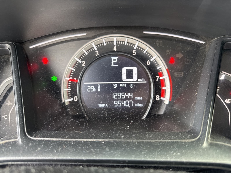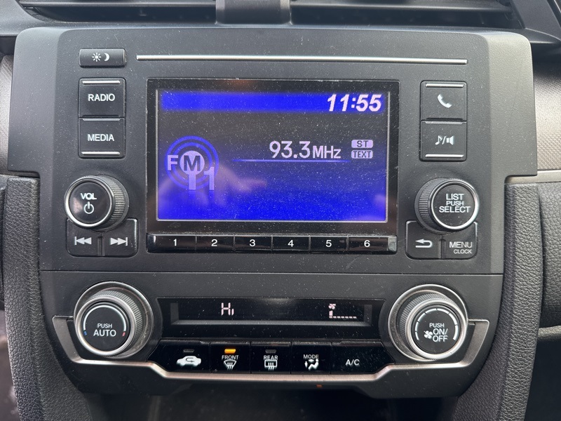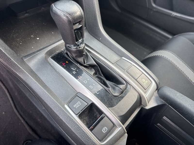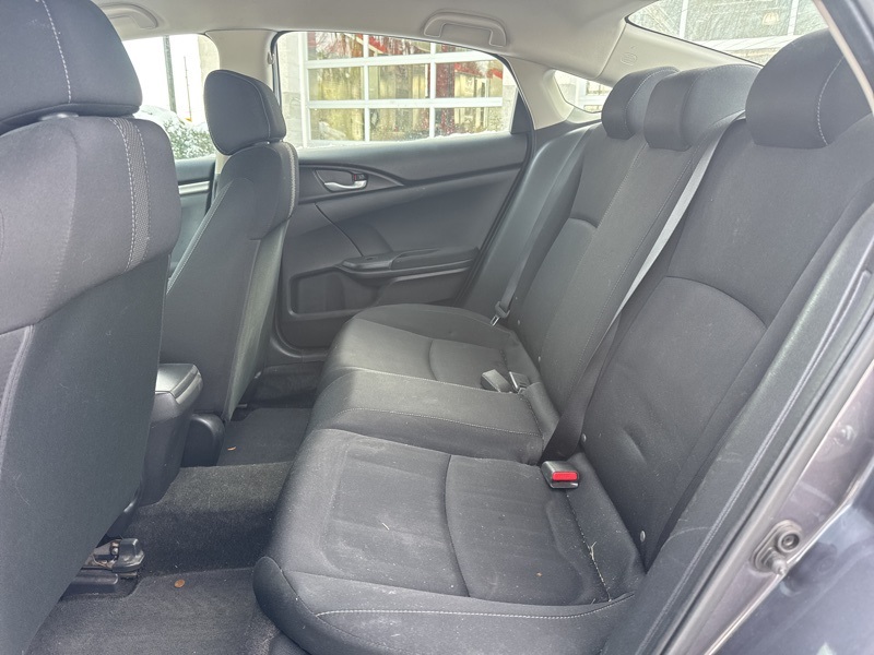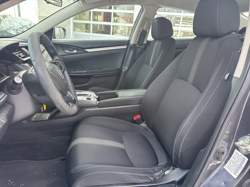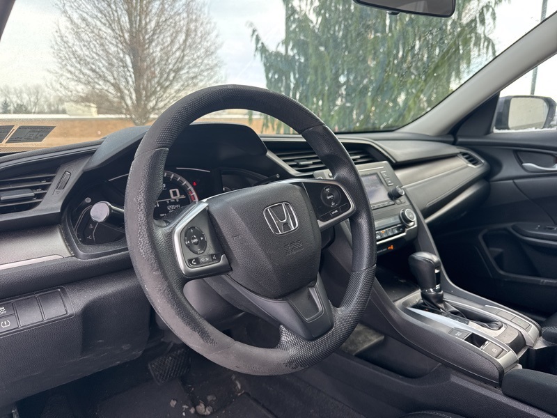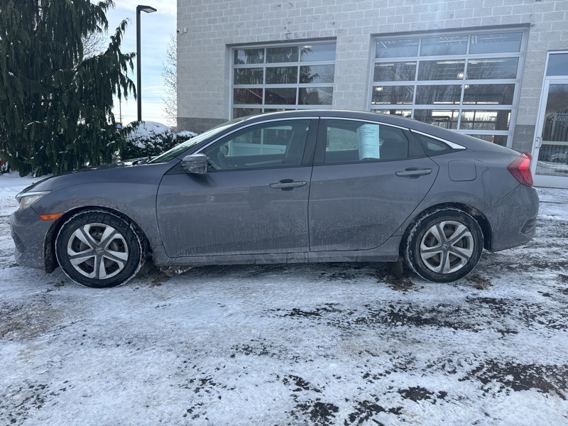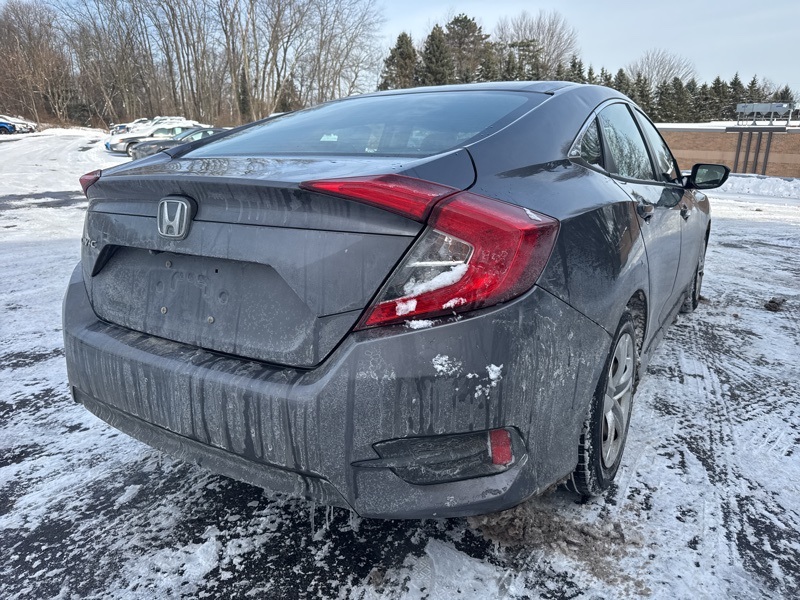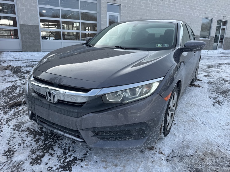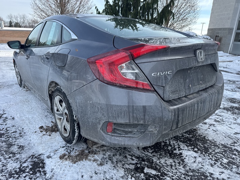 Modern Steel Metallic 2017 Honda Civic LX 4D Sedan FWD 2.0L I4 DOHC 16V i-VTEC CVT Black w/Cloth Seat Trim, 16" Wheels w/Full Covers, 4 Speakers, 4-Wheel Disc Brakes, ABS brakes, Air Conditioning, AM/FM radio, Automatic temperature control, Brake assist, Bumpers: body-color, Cloth Seat Trim, Compass, Delay-off headlights, Driver door bin, Driver vanity mirror, Dual front impact airbags, Dual front side impact airbags, Electronic Stability Control, Exterior Parking Camera Rear, Four wheel independent suspension, Front anti-roll bar, Front Bucket Seats, Front Center Armrest, Front reading lights, Fully automatic headlights, Illuminated entry, Low tire pressure warning, Occupant sensing airbag, Outside temperature display, Overhead airbag, Panic alarm, Passenger door bin, Passenger vanity mirror, Power door mirrors, Power steering, Power windows, Radio data system, Radio: 160-Watt AM/FM Audio System, Rear anti-roll bar, Rear window defroster, Reclining Front Bucket Seats, Remote keyless entry, Security system, Speed control, Speed-sensing steering, Steering wheel mounted audio controls, Tachometer, Telescoping steering wheel, Tilt steering wheel, and Traction control. 31/40 City/Highway MPG
