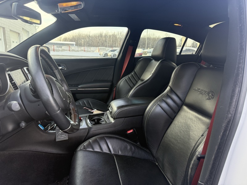 **BLUETOOTH HANDS FREE PHONE**, **LEATHER**, **BACK-UP CAMERA**, **HEATED AND COOLED FRONT SEATS**, **LOW LOW MILES !!!**, **HARMON KARDON PREMIUM SOUND**, **POWER TILT / TELESCOPING WHEEL**, **RED SEAT BELTS**, **20" SRT ALUMINUM WHEELS**, **POWER DRIVER AND PASSENGER SEATS**, **HEATED STEERING WHEEL**, **BLIND SPOT DETECTION**, **REAR PARKING SONAR**, **FACTORY REMOTE START**, **MEMORY DRIVER SEAT**, **HEATED REAR SEATS**, Black Leather, 19 harman/kardon Greenedge Speakers, 4-Wheel Disc Brakes, 6 Speakers, ABS brakes, Air Conditioning, Alloy wheels, AM/FM radio: SiriusXM, Anti-whiplash front head restraints, Apple CarPlay/Android Auto, Audio memory, Auto-dimming door mirrors, Auto-dimming Rear-View mirror, Automatic temperature control, Brake assist, Bumpers: body-color, Cargo Net, Compass, Delay-off headlights, Driver door bin, Driver vanity mirror, Dual front impact airbags, Dual front side impact airbags, Electronic Stability Control, Emergency communication system: SiriusXM Guardian, Floormats Front/Rear Left, Floormats Front/Rear Right, Four wheel independent suspension, Front anti-roll bar, Front Bucket Seats, Front Center Armrest, Front dual zone A/C, Front reading lights, Fully automatic headlights, Garage door transmitter: HomeLink, harman/kardon Audio Group, harman/kardon GreenEdge Amp, Heated 2nd Row Seats, Heated door mirrors, Heated Front Seats, Heated front seats, Heated rear seats, Heated Steering Wheel, Heated steering wheel, Hellcat Logo Laguna Leather Seat, High intensity discharge headlights: Bi-Xenon, Illuminated entry, Knee airbag, Leather Shift Knob, Leather Trim Seats, Low tire pressure warning, Manufacturer's Statement of Origin, Memory seat, Navigation System, Occupant sensing airbag, Outside temperature display, Overhead airbag, Overhead console, Panic alarm, ParkView Rear Back-Up Camera, Passenger door bin, Passenger vanity mirror, Power 4-Way Driver Lumbar Adjust, Power 8-Way Driver Seat, Power Convenience Group, Power door mirrors, Power driver seat, Power Driver/Passenger 4-Way Lumbar Adjust, Power Front Driver/Passenger Seats, Power steering, Power Sunroof, Power Tilt/Telescope Steering Column, Power windows, Quick Order Package 23T, Radio data system, Radio: Uconnect 4C Nav w/8.4" Display, Radio/Driver Seat/Mirrors Memory, Rear anti-roll bar, Rear reading lights, Rear window defroster, Red Seat Belts, Remote keyless entry, Security system, Speed control, Speed-Sensitive Wipers, Split folding rear seat, Spoiler, Sport steering wheel, Steering wheel mounted audio controls, Tachometer, Telescoping steering wheel, Tilt steering wheel, Traction control, Trip computer, Variably intermittent wipers, Ventilated Front Seats, Ventilated front seats, Wheels: 20" x 9.5" SRT Lowgloss Black Performance. Recent Arrival! Clean CARFAX. White Knuckle Clearcoat 2018 Dodge Charger SRT Hellcat RWD 8-Speed Automatic 6.2L Supercharged HEMI V8 SRT