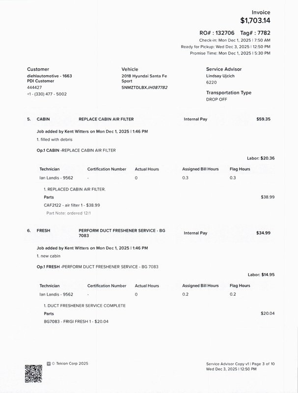 - Cabin air filter