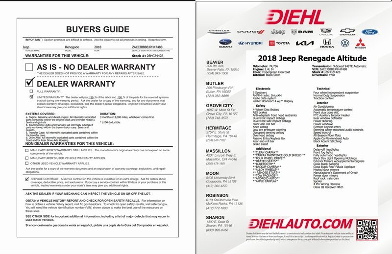 Hypergreen Clearcoat 2018 Jeep Renegade Altitude 4D Sport Utility 4WD 2.4L I4 9-Speed 948TE Automatic Odometer is 11126 miles below market average! 21/29 City/Highway MPG
