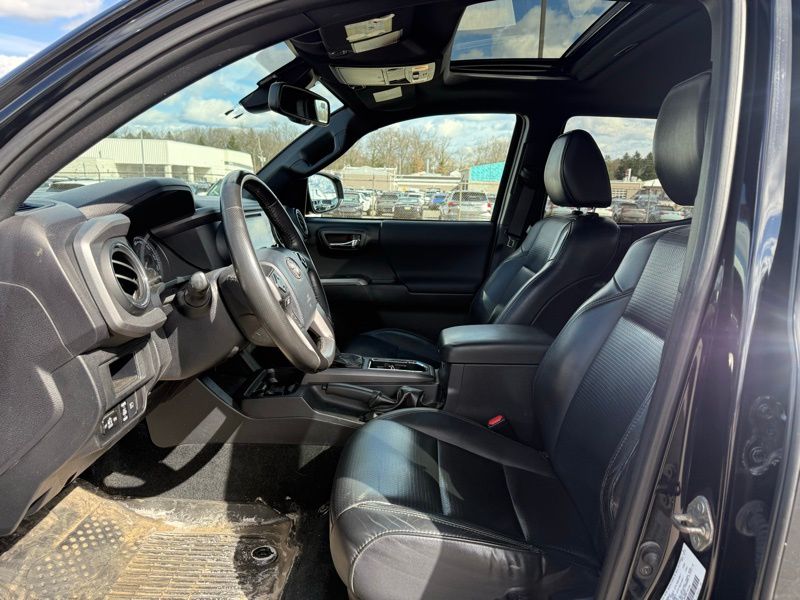 **CLEAN CARFAX ONE OWNER**, **BACK UP CAMERA**, **BLIND SPOT DETECTION**, **REAR PARKING SONAR**, **KEYLESS ENTRY**, **7" TOUCHSCREEN RADIO**, **JBL PREMIUM SOUND**, **FACTORY NAVIGATIOMN**, **WIRELESS PHONE CHARGER**, **FACTORY TONNEAU COVER**, **RUNNING BOARDS**, **17: ALLOY WHEELS**, **PRE COLLISION SYSTEM**, **ADAPTIVE CRUISE CONTROL**, **LANE KEEP ASSIST**, **AUTO HIGH BEAMS**, **TRD SPORT PREMIUM PACKAGE**, 4WD, 120V/400W Deck Mounted AC Power, Auto-Dimming Inside Rear-View Mirror w/Compass, Automatic Headlights, Color-Keyed Overfenders, Dual Zone Automatic Climate Control, Engine Immobilizer, Entune App Suite, Heated Front Seats, Leather Seat Trim, LED Daytime Running Lamps, Power Sliding Rear Window w/Privacy Glass, Power Tilt/Slide Moonroof, Radio: Entune Premium JBL AM/FM/CD w/Nav & App Ste, Smart Key w/Push Button Start, TRD Premium Sport Package (PQ), TRD Sport Package (PY), Variable Intermittent Wipers, Wide Angle Front Fog Lamps. Recent Arrival! CARFAX One-Owner. Clean CARFAX. Midnight Black Metallic 2018 Toyota Tacoma TRD Sport V6 4WD 6-Speed Automatic 3.5L V6 PDI DOHC 24V LEV3-ULEV70 278hp