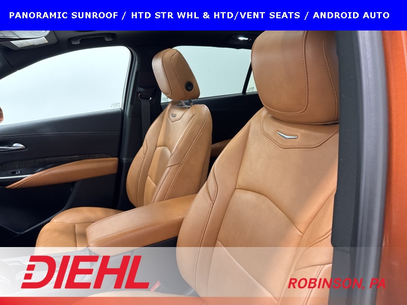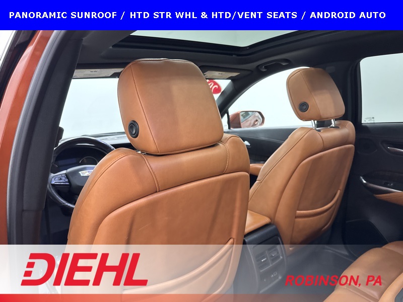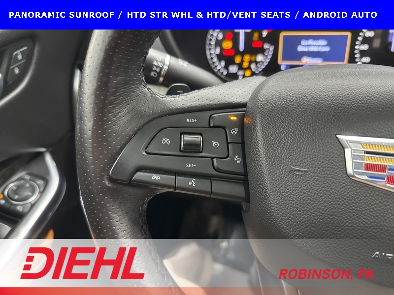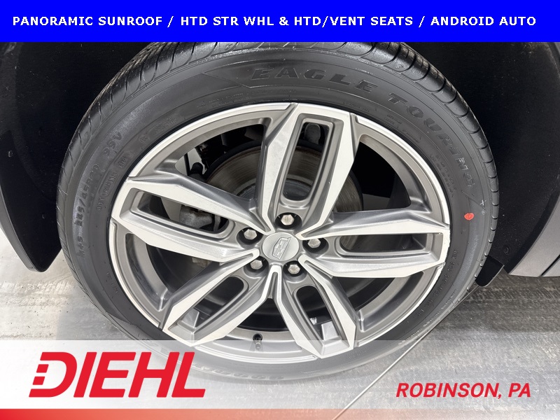 Under the hood, the 2.0L turbo engine with 258 lb ft of torque gives this Cadillac the snap it needs to make merging actually enjoyable. The AWD system keeps everything planted, and the active sport suspension smooths out Pittsburgh roads like it’s trying to apologize on their behalf. The upgraded wheels, hands free liftgate, and full suite of driver assist features including blind zone alert, lane change alert, forward collision alert, lane keep assist, and automatic emergency braking turn every drive into a calm, controlled experience regardless of what traffic throws at you.