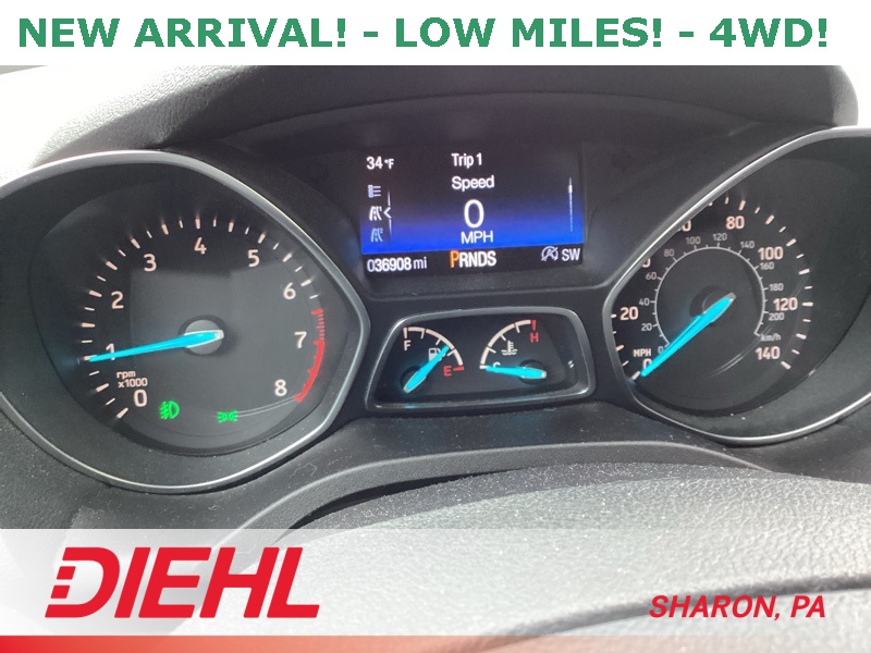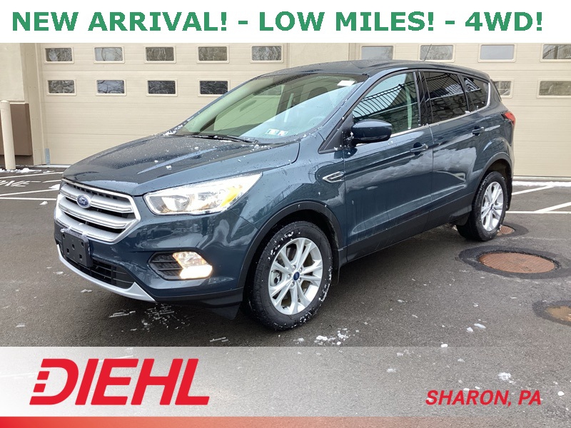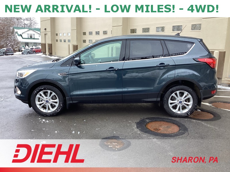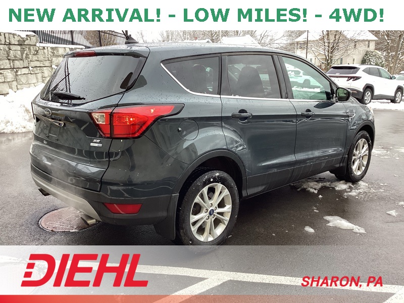 4WD, 3.51 Axle Ratio, 4-Wheel Disc Brakes, 6 Speakers, ABS brakes, Air Conditioning, Alloy wheels, AM/FM radio: SiriusXM, AppLink/Apple CarPlay and Android Auto, Automatic temperature control, Brake assist, Bumpers: body-color, Compass, Delay-off headlights, Driver door bin, Driver vanity mirror, Dual front impact airbags, Dual front side impact airbags, Electronic Stability Control, Emergency communication system: SYNC 3 911 Assist, Equipment Group 200A, Exterior Parking Camera Rear, FordPass Connect, Four wheel independent suspension, Front anti-roll bar, Front Bucket Seats, Front Center Armrest, Front dual zone A/C, Front fog lights, Front reading lights, Fully automatic headlights, Heated front seats, Heated Unique Cloth Front Bucket Seats, Illuminated entry, Knee airbag, Low tire pressure warning, Occupant sensing airbag, Outside temperature display, Overhead airbag, Overhead console, Panic alarm, Passenger door bin, Passenger vanity mirror, Power door mirrors, Power driver seat, Power steering, Power windows, Radio data system, Radio: AM/FM Stereo w/MP3 Capable, Rear anti-roll bar, Rear seat center armrest, Rear window defroster, Rear window wiper, Remote keyless entry, Security system, Speed control, Speed-sensing steering, Split folding rear seat, Steering wheel mounted audio controls, SYNC 3 Communications & Entertainment System, Tachometer, Telescoping steering wheel, Tilt steering wheel, Traction control, Trip computer, Variably intermittent wipers, Wheels: 17" Sparkle Silver-Painted Aluminum. Sea Green 2019 Ford Escape SE 4WD 6-Speed Automatic 1.5L EcoBoost