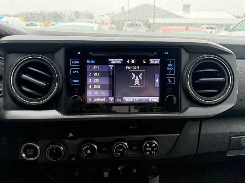 **LOCALLY OWNED TRADE-IN**, **PRE COLLISION SYSTEM**, **ADAPTIVE CRUISE CONTROL**, **LANE KEEP ASSIST**, **AUTO HEAD LIGHTS**, **7" TOUCHSCREEN RADIO**, **FACTORY NAVIGATION**, **SMART KEY**, **POWER SLIDING REAR WINDOW**, **WIRELSS PHONE CHARGER**, **ALL WEATHER MATS**, **17" ALLOY WHEEL**, **BACK UP CAMERA**, **BLUETOOTH**, 4WD, 120V/400W Deck Mounted AC Power, ABS brakes, Alloy wheels, Anti-whiplash front head restraints, Auto-Dimming Inside Rear-View Mirror w/Compass, Brake assist, Color-Keyed Overfenders, Dual front impact airbags, Dual front side impact airbags, Electronic Stability Control, Engine Immobilizer, Front anti-roll bar, Front wheel independent suspension, Illuminated entry, Knee airbag, LED Daytime Running Lamps, Low tire pressure warning, Occupant sensing airbag, Overhead airbag, Power Sliding Rear Window w/Privacy Glass, Remote keyless entry, Remote Keyless Entry System, Smart Key w/Push Button Start, Traction control, TRD Sport Package, Variable Intermittent Wipers, Wide Angle Front Fog Lamps. Recent Arrival! 2019 Toyota Tacoma TRD Sport V6 4WD 6-Speed 3.5L V6 PDI DOHC 24V LEV3-ULEV70 278hp