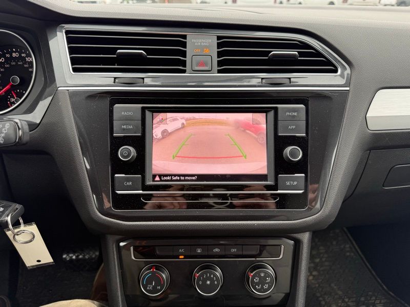**FRONT WHEEL DRIVE**, **FRONT COLLISION MITIIGATION**, **BLIND SPOT DETECTION**, **REMOTE KEYLESS ENTRY**, **POWER LIFTGATE**, **BACK UP CAMERA**, **APPLE CARPLAY / ANDROID AUTO**, **AUTO HEADLIGHTS**, **POWER WINDOWS**, **POWER LOCKS**, **17" ALLOY WHEELS**, **SECOND ROW BENCH**, 4-Wheel Disc Brakes, ABS brakes, Blind Spot Monitor w/Rear Traffic Alert, Brake assist, Driver Assistance Package, Dual front impact airbags, Dual front side impact airbags, Electronic Stability Control, Forward Collision Warning, Front anti-roll bar, Low tire pressure warning, Occupant sensing airbag, Overhead airbag, Rear anti-roll bar. Recent Arrival! Platinum Gray Metallic 2019 Volkswagen Tiguan 2.0T S FWD 8-Speed Automatic with Tiptronic 2.0L TSI DOHC