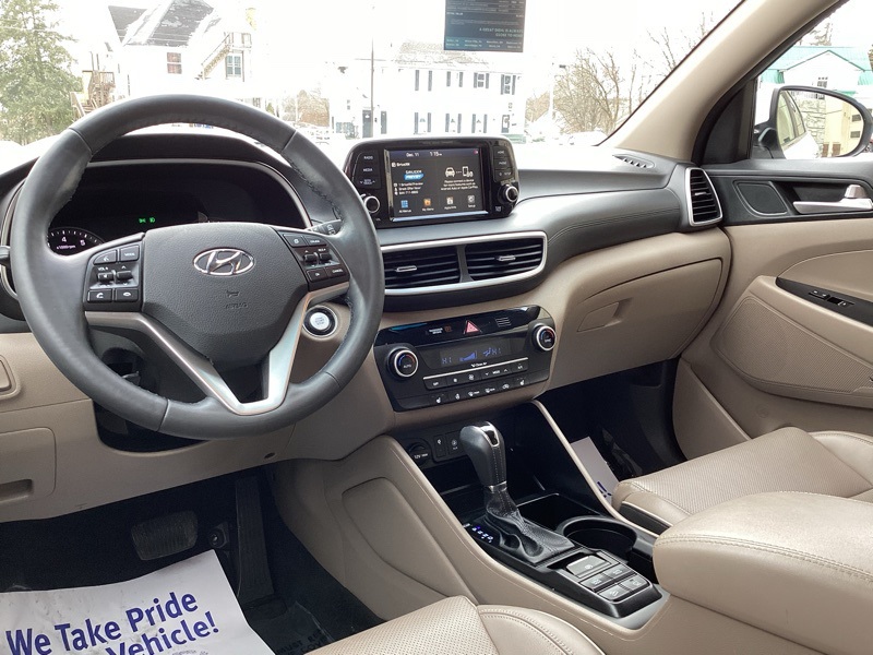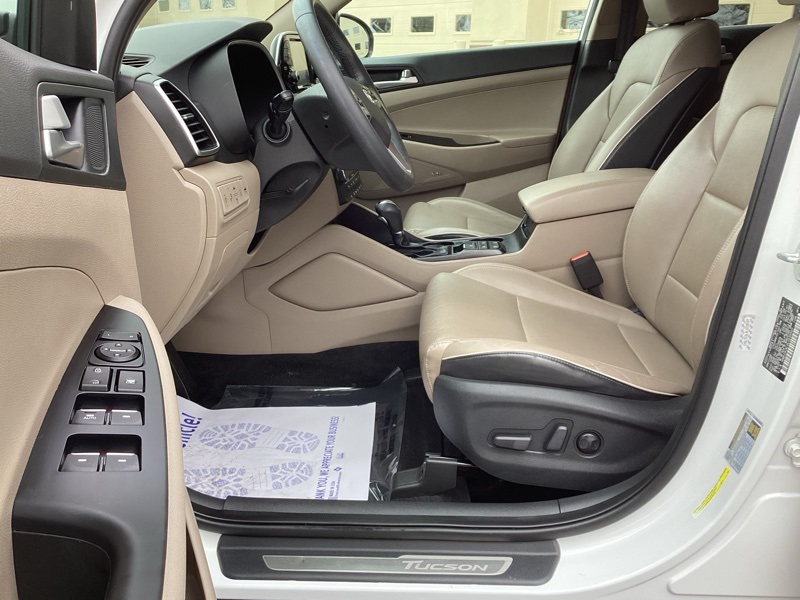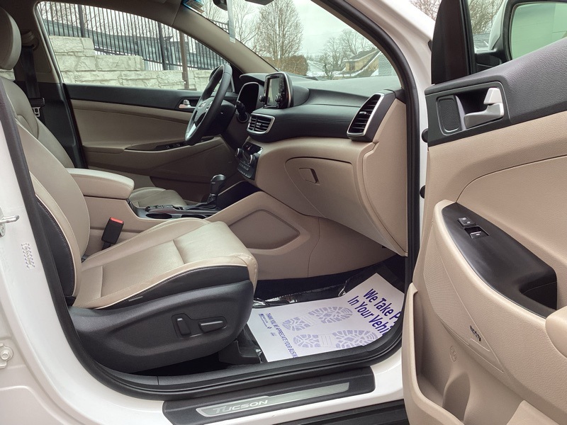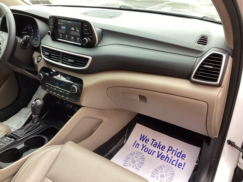**HEATED SEATS**, **BLIND SPOT MONITOR**, **BACKUP CAMERA**, **POWER DRIVERS SEAT**, **PREMIUM SOUND SYSTEM**, **LEATHER SEATS**, **NAVIGATION**, **APPLE CAR PLAY**, **ANDROID AUTO**, AWD, 18" x 7.0J Alloy Wheels, 4-Wheel Disc Brakes, 8 Speakers, ABS brakes, Air Conditioning, Alloy wheels, AM/FM radio: SiriusXM, Apple CarPlay & Android Auto, Auto-dimming Rear-View mirror, Automatic temperature control, Axle Ratio: 3.195, Brake assist, Bumpers: body-color, Cargo Cover, Cargo Net, Carpeted Floor Mats, Delay-off headlights, Driver door bin, Driver vanity mirror, Dual front impact airbags, Dual front side impact airbags, Electronic Stability Control, Emergency communication system, Exterior Parking Camera Rear, First Aid Kit, Four wheel independent suspension, Front anti-roll bar, Front Bucket Seats, Front Center Armrest, Front dual zone A/C, Front fog lights, Front reading lights, Fully automatic headlights, Garage door transmitter: HomeLink, Heated door mirrors, Heated Front Bucket Seats, Heated front seats, Heated steering wheel, Illuminated entry, Leather Seat Trim, Leather Shift Knob, Low tire pressure warning, Occupant sensing airbag, Option Group 01, Outside temperature display, Overhead airbag, Overhead console, Panic alarm, Passenger door bin, Passenger vanity mirror, Power door mirrors, Power driver seat, Power Liftgate, Power passenger seat, Power steering, Power windows, Radio: Infinity Audio System, Rear anti-roll bar, Rear Bumper Applique, Rear seat center armrest, Rear window defroster, Rear window wiper, Remote keyless entry, Roof rack: rails only, Security system, Speed control, Speed-sensing steering, Split folding rear seat, Spoiler, Steering wheel mounted audio controls, Tachometer, Telescoping steering wheel, Tilt steering wheel, Traction control, Trip computer, Turn signal indicator mirrors, Variably intermittent wipers. Winter White 2020 Hyundai Tucson Limited AWD 6-Speed Automatic with Shiftronic 2.4L I4 DGI DOHC 16V