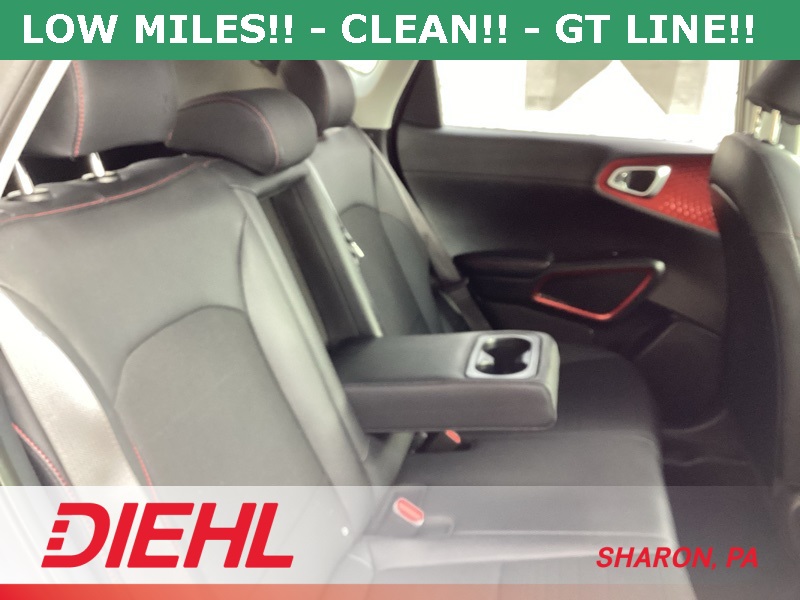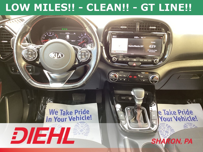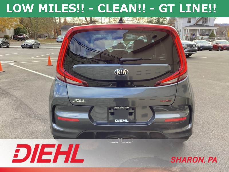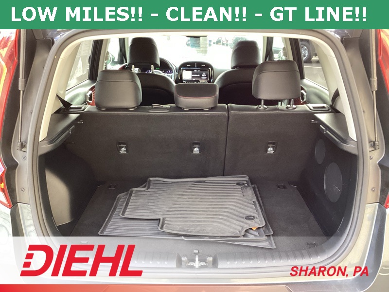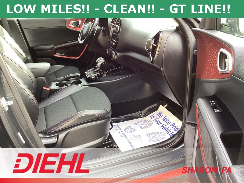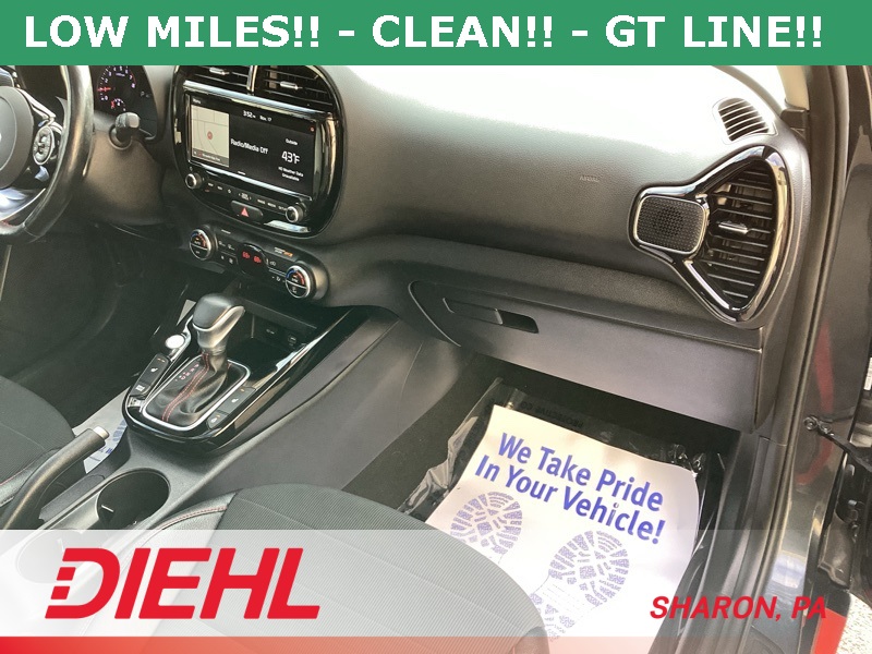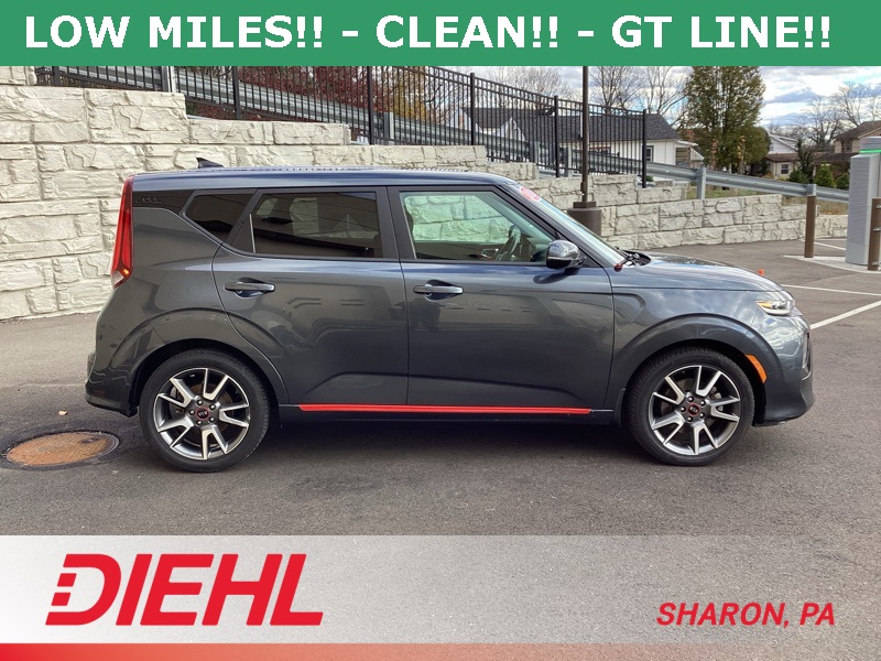 10-Way Power Adjustable Driver's Seat, 4-Wheel Disc Brakes, 8 Speakers, ABS brakes, Air Conditioning, Alloy wheels, AM/FM radio: SiriusXM, Apple CarPlay & Android Auto, Automatic temperature control, Brake assist, Bumpers: body-color, Carpeted Floor Mats, Delay-off headlights, Driver door bin, Driver vanity mirror, Dual front impact airbags, Dual front side impact airbags, Electronic Stability Control, Emergency communication system: UVO link, Exterior Parking Camera Rear, Front anti-roll bar, Front Bucket Seats, Front Center Armrest, Front dual zone A/C, Front fog lights, Front reading lights, Front wheel independent suspension, Fully automatic headlights, Heads-Up Display, Heated door mirrors, Heated Front Bucket Seats, Heated front seats, Heated steering wheel, Leather Shift Knob, Leather steering wheel, Leatherette & Cloth Seat Trim, Low tire pressure warning, Navigation System, Occupant sensing airbag, Outside temperature display, Overhead airbag, Overhead console, Passenger door bin, Passenger vanity mirror, Power door mirrors, Power driver seat, Power moonroof, Power steering, Power windows, Radio: AM/FM/MP3 UVO Link Audio System, Rear seat center armrest, Rear window defroster, Rear window wiper, Remote keyless entry, Speed control, Speed-sensing steering, Split folding rear seat, Sport steering wheel, Steering wheel mounted audio controls, Tachometer, Telescoping steering wheel, Tilt steering wheel, Traction control, Trip computer, Turn signal indicator mirrors, Variably intermittent wipers, Wheels: 18" x 7.5 Alloy. Gravity Gray 2020 Kia Soul GT-Line Turbo FWD 7-Speed Automatic 1.6L I4 DGI Turbocharged DOHC 16V LEV3-ULEV70 201hp