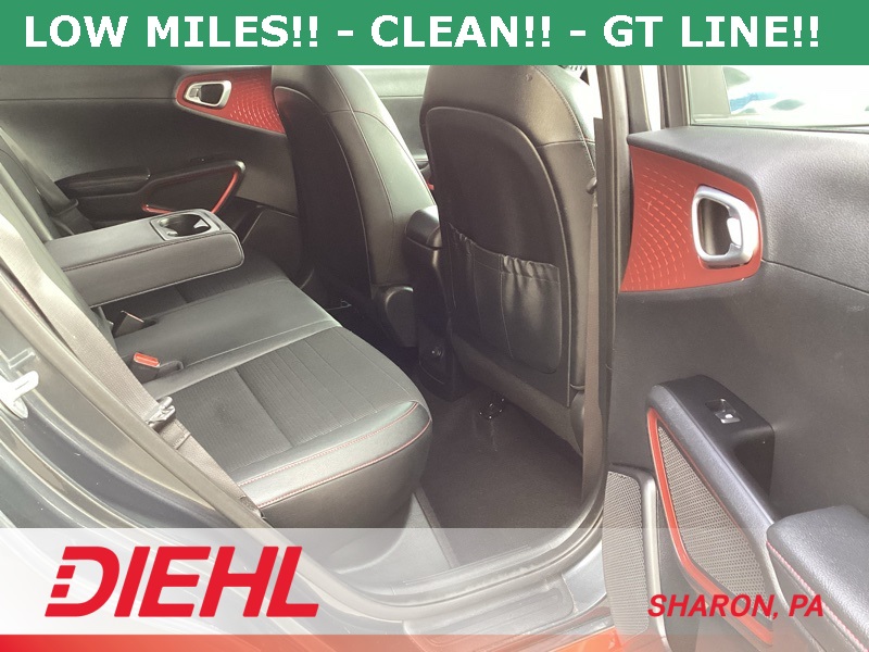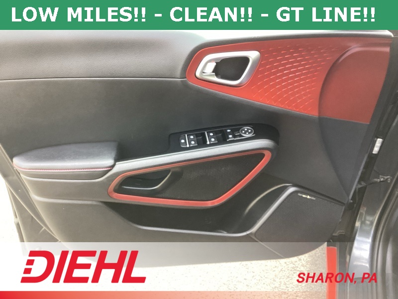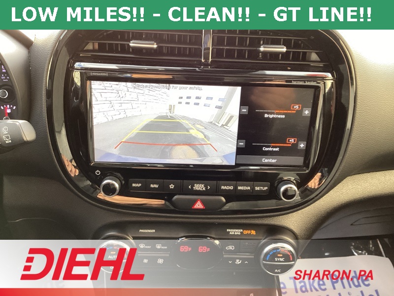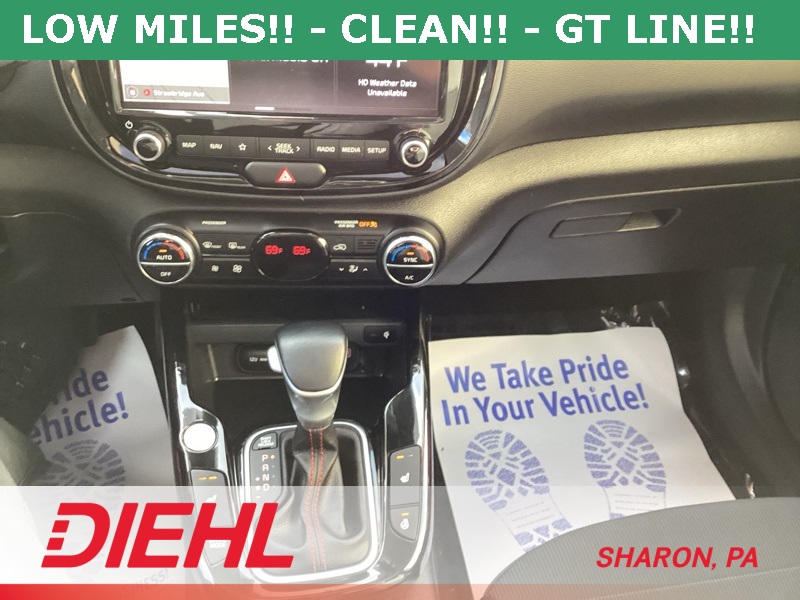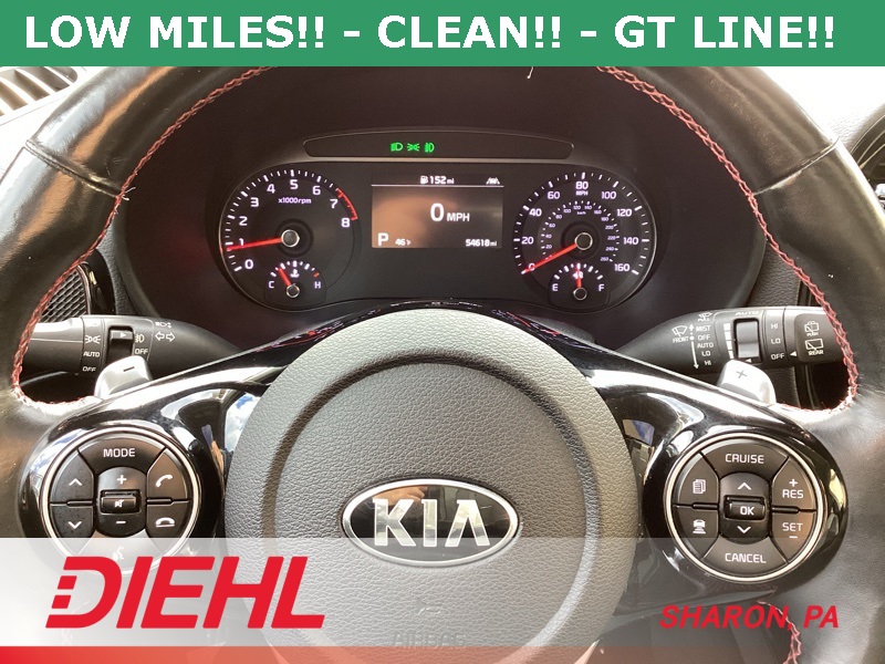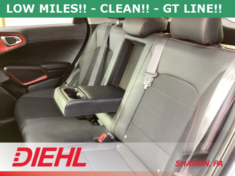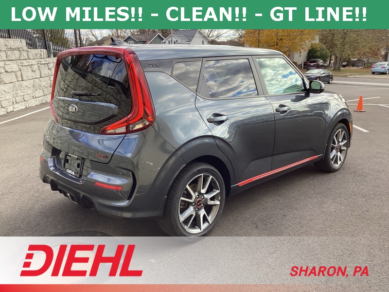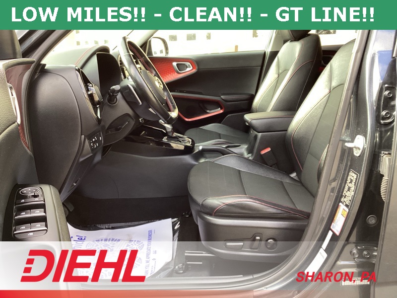 10-Way Power Adjustable Driver's Seat, 4-Wheel Disc Brakes, 8 Speakers, ABS brakes, Air Conditioning, Alloy wheels, AM/FM radio: SiriusXM, Apple CarPlay & Android Auto, Automatic temperature control, Brake assist, Bumpers: body-color, Carpeted Floor Mats, Delay-off headlights, Driver door bin, Driver vanity mirror, Dual front impact airbags, Dual front side impact airbags, Electronic Stability Control, Emergency communication system: UVO link, Exterior Parking Camera Rear, Front anti-roll bar, Front Bucket Seats, Front Center Armrest, Front dual zone A/C, Front fog lights, Front reading lights, Front wheel independent suspension, Fully automatic headlights, Heads-Up Display, Heated door mirrors, Heated Front Bucket Seats, Heated front seats, Heated steering wheel, Leather Shift Knob, Leather steering wheel, Leatherette & Cloth Seat Trim, Low tire pressure warning, Navigation System, Occupant sensing airbag, Outside temperature display, Overhead airbag, Overhead console, Passenger door bin, Passenger vanity mirror, Power door mirrors, Power driver seat, Power moonroof, Power steering, Power windows, Radio: AM/FM/MP3 UVO Link Audio System, Rear seat center armrest, Rear window defroster, Rear window wiper, Remote keyless entry, Speed control, Speed-sensing steering, Split folding rear seat, Sport steering wheel, Steering wheel mounted audio controls, Tachometer, Telescoping steering wheel, Tilt steering wheel, Traction control, Trip computer, Turn signal indicator mirrors, Variably intermittent wipers, Wheels: 18" x 7.5 Alloy. Gravity Gray 2020 Kia Soul GT-Line Turbo FWD 7-Speed Automatic 1.6L I4 DGI Turbocharged DOHC 16V LEV3-ULEV70 201hp