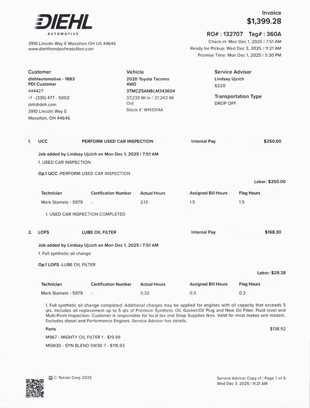 Diehl Automotive utilizes a system that generates market value pricing automatically for new and pre-owned vehicles and may cause errors, inaccuracies, or omissions. Some aftermarket additions or accessories may not be displayed properly. For accuracy, please contact the dealer for real-time, accurate pricing. A documentation fee of $477 applies and is not included in the pricing. Tax, Title, and Tags are also not included and must be paid by the purchaser. Some prices may include manufacturer-to-dealer offers that are not compatible with manufacturer special finance programs and/or lease offers. While great effort is made to ensure the accuracy of the information on this site, errors do occur so please verify information with a customer service rep. This is easily done by calling us or by visiting us at the dealership.