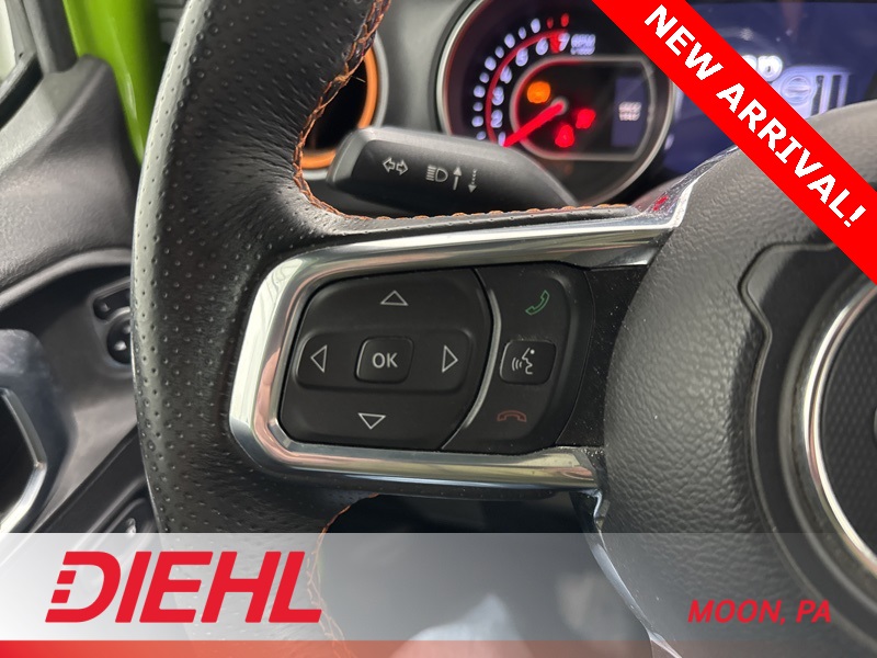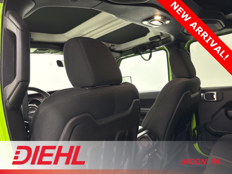 Inside, the cabin mixes toughness with comfort. Leather trimmed seating, dual zone climate control, keyless start, remote start, and a heated steering wheel make every drive feel upgraded. The premium sound system, navigation, Apple CarPlay, and Android Auto keep your tech dialed in, while Corning Gorilla Glass and the power sliding targa roof add practicality with a side of personality.