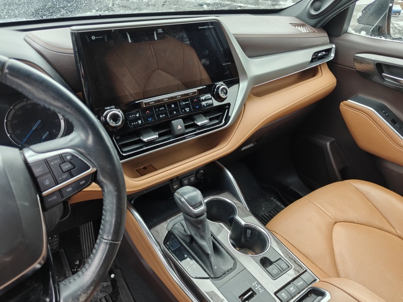 Highlander Hybrid Platinum, 2.5L I4 PDI Hybrid DOHC 16V LEV3-SULEV30 186hp, Glazed Caramel w/Leather Seat Trim, Auto High-beam Headlights, Delay-off headlights, Front fog lights, Fully automatic headlights, Navigation system: Dynamic Navigation (3-year trial), Power Liftgate. Recent Arrival!