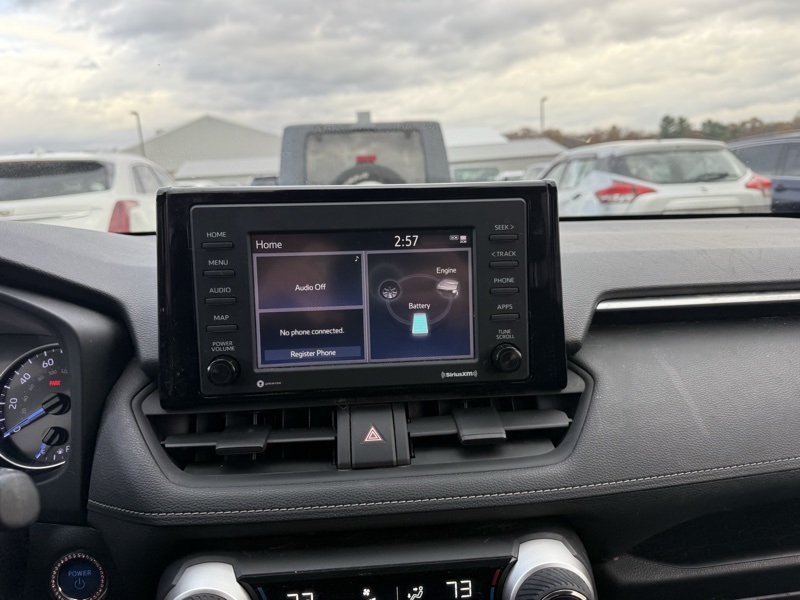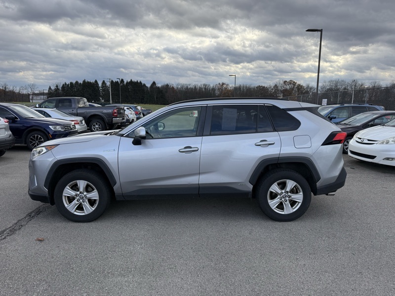 **CARFAX ONE OWNER**, **ALL WHEEL DRIVE**, **BLUETOOTH HANDS FREE PHONE**, **BACK-UP CAMERA**, **HEATED FRONT SEATS**, **APPLE CARPLAY / ANDROID AUTO**, **PRE COLLISION SYSTYEM**, **ADAPTIVE CRUISE CONTROL**, **HEATED STEERING WHEEL**, **POWER DRIVER SEAT**, **8" TOUCHSCREEN RADIO**, 2.5L 4-Cylinder, 4-Wheel Disc Brakes, 6 Speakers, ABS brakes, Air Conditioning, Alloy wheels, AM/FM radio: SiriusXM, AM/FM Stereo, Apple CarPlay/Android Auto, Auto High-beam Headlights, Automatic temperature control, Axle Ratio: TBD, Brake assist, Bumpers: body-color, Delay-off headlights, Driver door bin, Driver vanity mirror, Dual front impact airbags, Dual front side impact airbags, Electronic Stability Control, Emergency communication system: Safety Connect with 1-year trial, Exterior Parking Camera Rear, Fabric Seat Trim (FA), Four wheel independent suspension, Front anti-roll bar, Front Bucket Seats, Front Center Armrest, Front Door Smart Key System w/Push Button Start, Front dual zone A/C, Front fog lights, Front reading lights, Front Seat Heating, Front Sport Seats, Fully automatic headlights, Heated 3-Spoke Leather Steering Wheel, Heated door mirrors, Illuminated entry, Knee airbag, Lane Departure Warning System, Low tire pressure warning, Occupant sensing airbag, Outside temperature display, Overhead airbag, Overhead console, Panic alarm, Passenger door bin, Passenger vanity mirror, Power door mirrors, Power driver seat, Power steering, Power windows, Radio data system, Rain Sensing Front Wipers, Rear anti-roll bar, Rear seat center armrest, Rear window defroster, Rear window wiper, Remote keyless entry, Roof rack: rails only, Speed control, Speed-sensing steering, Split folding rear seat, Spoiler, Steering wheel mounted audio controls, Telescoping steering wheel, Tilt steering wheel, Traction control, Trip computer, Turn signal indicator mirrors, Variably intermittent wipers, Wheels: 17" x 7.0J Silver Aluminum Alloy, Wiper Deicer, XLE Grade Weather Package. Silver Sky Metallic 2021 Toyota RAV4 Hybrid XLE AWD eCVT 2.5L 4-Cylinder