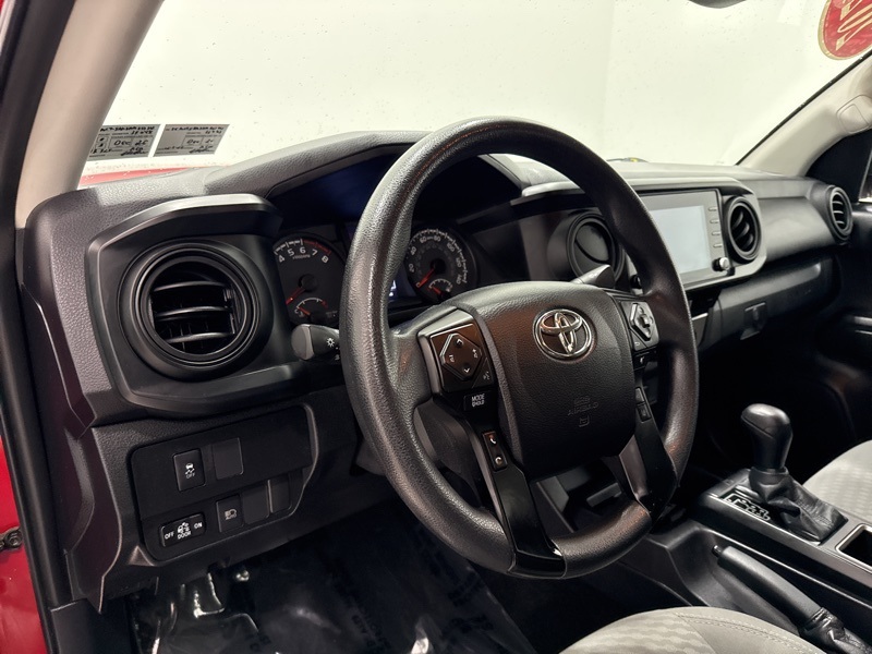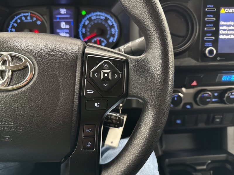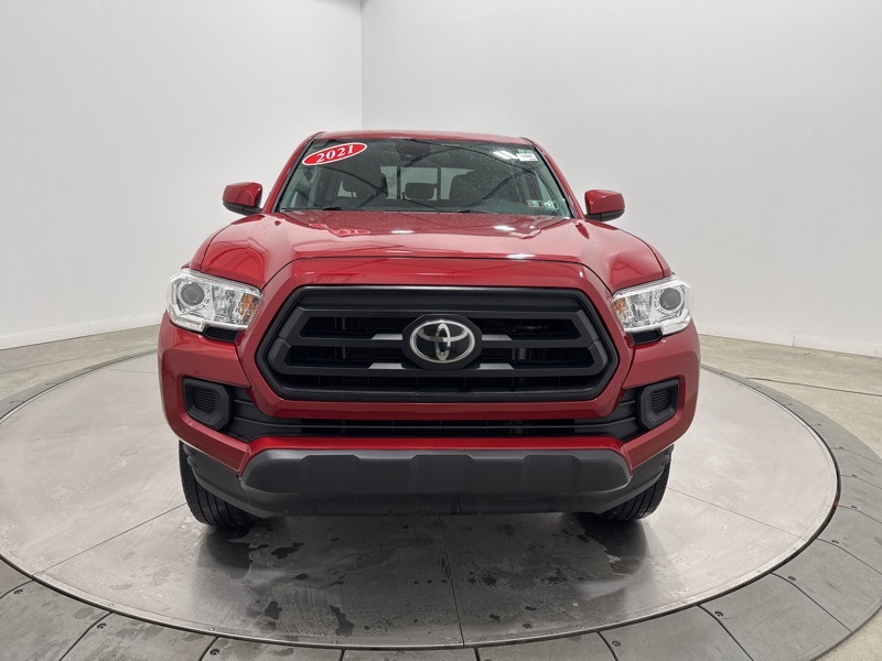 On the outside, this 2021 Toyota Tacoma SR5 shows off classic Tacoma toughness with a bold grille, sleek body lines, alloy wheels, and that ready-to-work bed. Toyota Safety Sense brings adaptive cruise control, lane departure alert, automatic high beams, and pre collision braking to boost confidence whether you're commuting, towing, or chasing the sunset just because it looks good out that windshield.