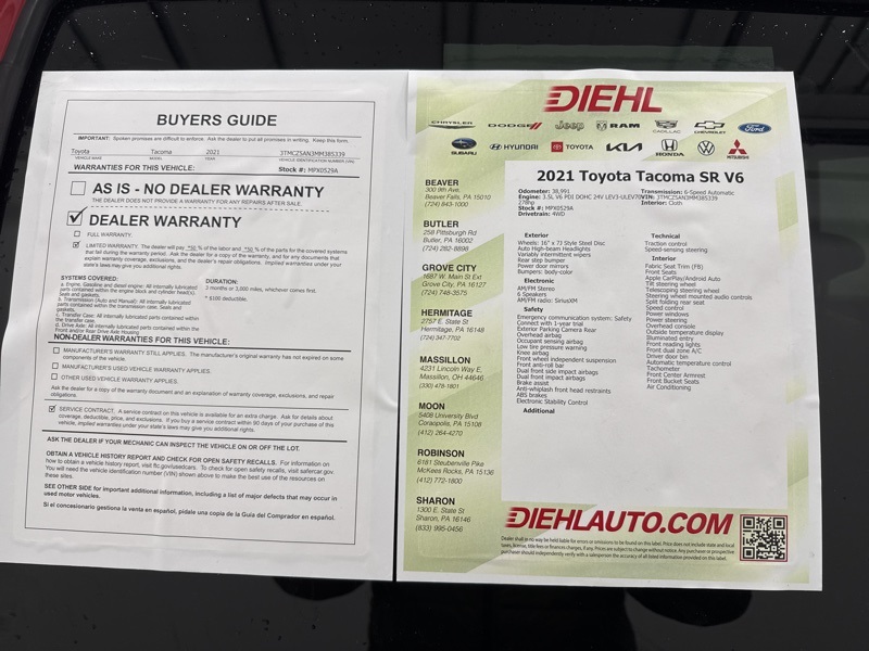 This 2021 Toyota Tacoma SR5 is Diversified Certified, which means it has been through a 125 point inspection and comes backed by a 3 month or 3,000 mile Extended Care Limited Warranty, 24 hour roadside assistance, and a vehicle history report for added peace of mind. Its the smart way to get a truck you can trust without overthinking every step.