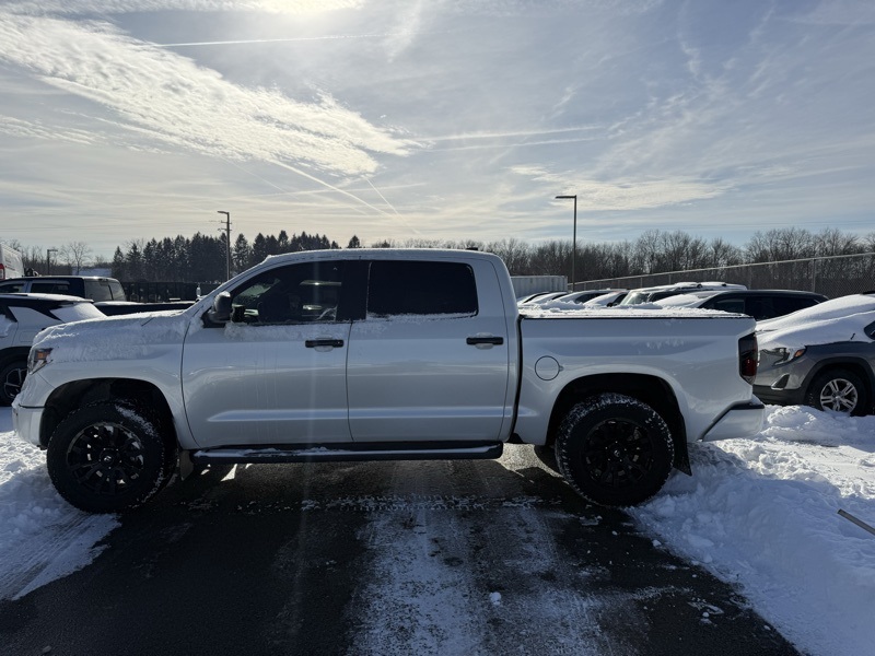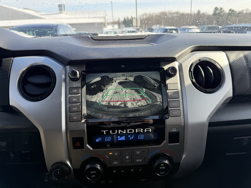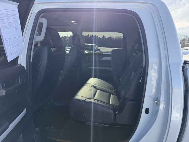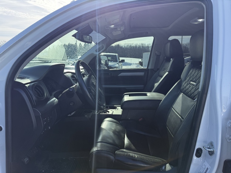 **BLUETOOTH HANDS FREE PHONE**, **LEATHER**, **MOONROOF**, **BACK-UP CAMERA**, **HEATED AND COOLED FRONT SEATS**, **PREMIUM JBL SOUND**, **CLEAN CARFAX ONE OWNER**, **APPLE CARPLAY / ANDROID AUTO**, **MEMORY DRIVER SEAT**, **PRE COLLISION SYSTEM**, **ADAPTIVE CRUISE CONTROL**, **LANE KEEP ASSIST**, **FACTORY NAVIGATION**, **RUNNING BOARDS**, **ADAPTIVE CRUISE CONTROL**, 4WD, Black w/Leather Seat Trim (LE), 12 Speakers, 4-Wheel Disc Brakes, 4.30 Axle Ratio, ABS brakes, Air Conditioning, Alloy wheels, AM/FM radio: SiriusXM, Apple CarPlay/Android Auto, Auto High-beam Headlights, Auto-dimming door mirrors, Auto-dimming Rear-View mirror, Automatic temperature control, Brake assist, Bumpers: body-color, Compass, Delay-off headlights, Driver door bin, Driver vanity mirror, Dual front impact airbags, Dual front side impact airbags, Electronic Stability Control, Emergency communication system: Safety Connect with 1-year trial, Exterior Parking Camera Rear, Front anti-roll bar, Front Bucket Seats, Front Center Armrest, Front dual zone A/C, Front fog lights, Front reading lights, Front wheel independent suspension, Fully automatic headlights, Garage door transmitter: HomeLink, Heated & Ventilated Front Bucket Seats, Heated door mirrors, Heated front seats, Illuminated entry, Knee airbag, Leather Seat Trim (LE), Low tire pressure warning, Memory seat, Navigation system: Dynamic Navigation (3-year trial), Occupant sensing airbag, Outside temperature display, Overhead airbag, Overhead console, Panic alarm, Passenger door bin, Passenger vanity mirror, Power door mirrors, Power driver seat, Power passenger seat, Power steering, Power Tilt & Slide Moonroof w/Sliding Sunshade, Power windows, Radio data system, Radio: Premium JBL Audio w/Dynamic Navigation, Rear reading lights, Rear seat center armrest, Rear step bumper, Rear window defroster, Remote Connect, Remote keyless entry, Safety Connect, Security system, Service Connect, SiriusXM Radio, Speed control, Speed-sensing steering, Split folding rear seat, Steering wheel memory, Steering wheel mounted audio controls, Tachometer, Telescoping steering wheel, Tilt steering wheel, Traction control, Trip computer, Turn signal indicator mirrors, Variably intermittent wipers, Ventilated front seats, Voltmeter, Wheels: 20" 6-Spoke Alloy w/Accented Spokes. Recent Arrival! CARFAX One-Owner. Clean CARFAX. Wind Chill Pearl 2021 Toyota Tundra Platinum 4WD 6-Speed Automatic Electronic i-Force 5.7L V8 DOHC 32V LEV