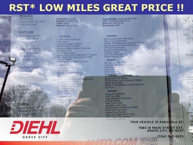 *BACK UP CAMERA*, **4X4**, 10-Way Power Driver Seat w/Lumbar, 12-Volt Rear Auxiliary Power Outlet, 2 USB Ports (First Row), 4-Wheel Disc Brakes, 4.2" Diagonal Color Display Driver Info Center, ABS brakes, All-Star Edition, Auto-Locking Rear Differential, Bluetooth® For Phone, Body Color Grille, Chevrolet Connected Access Capable, Cloth Rear Seat w/Storage Package, Color-Keyed Carpeting Floor Covering, Compass, Convenience Package, Deep-Tinted Glass, Dual Exhaust w/Polished Outlets, Dual front impact airbags, Dual front side impact airbags, Dual-Zone Automatic Climate Control, Electric Rear-Window Defogger, Electronic Cruise Control, EZ Lift Power Lock & Release Tailgate, Front anti-roll bar, Front Frame-Mounted Black Recovery Hooks, Front LED Fog Lamps, Front Rubberized Vinyl Floor Mats, Front wheel independent suspension, Heated Driver & Front Outboard Passenger Seats, Heated Steering Wheel, Heavy-Duty Air Filter, High Gloss Black Mirror Caps, Hill Descent Control, Hitch Guidance, Keyless Open & Start, Leather Wrapped Steering Wheel, LED Cargo Area Lighting, Low tire pressure warning, Manual Tilt/Telescoping Steering Column, Occupant sensing airbag, Off-Road Suspension, OnStar & Chevrolet Connected Services Capable, Overhead airbag, Power Door Locks, Power Front Windows w/Driver Express Up/Down, Power Front Windows w/Passenger Express Down, Power Rear Windows w/Express Down, Preferred Equipment Group 1SP, Rear 60/40 Folding Bench Seat (Folds Up), Rear Dual USB Charging-Only Ports, Rear Rubberized-Vinyl Floor Mats, Rear Vision Camera, Remote Vehicle Starter System, Standard Tailgate, Steering Wheel Audio Controls, Theft Deterrent System (Unauthorized Entry), Trailering Package, Wi-Fi Hot Spot Capable, Z71 Off-Road Package. Recent Arrival! Priced below KBB Fair Purchase Price!