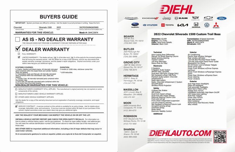 Diehl Automotive utilizes a system that generates market value pricing automatically for new and pre-owned vehicles and may cause errors, inaccuracies, or omissions. Some aftermarket additions or accessories may not be displayed properly. For accuracy, please contact the dealer for real-time, accurate pricing. A documentation fee of $477 applies and is not included in the pricing. Tax, Title, and Tags are also not included and must be paid by the purchaser. Some prices may include manufacturer-to-dealer offers that are not compatible with manufacturer special finance programs and/or lease offers. While great effort is made to ensure the accuracy of the information on this site, errors do occur so please verify information with a customer service rep. This is easily done by calling us or by visiting us at the dealership.