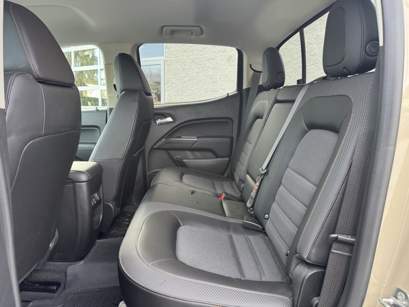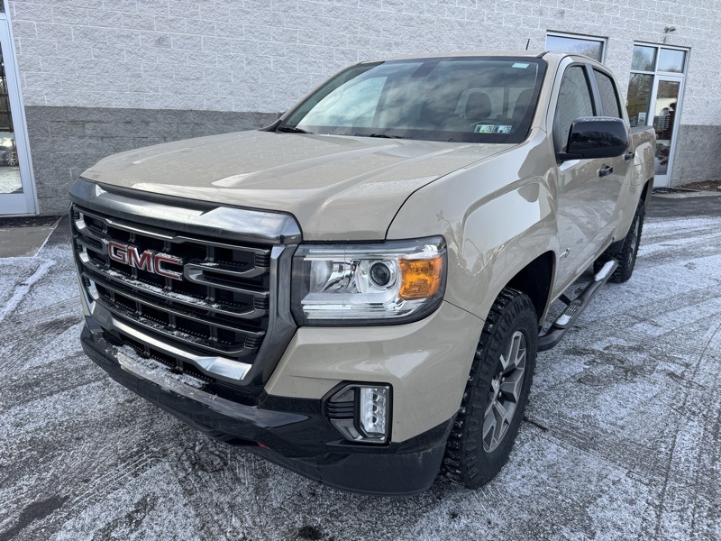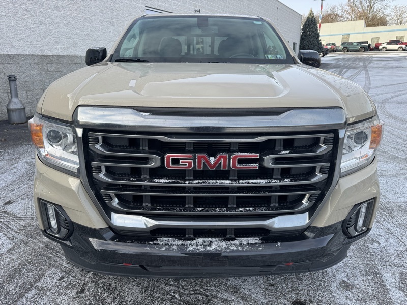 Desert Sand Metallic 2022 GMC Canyon AT4 w/Cloth 4D Crew Cab 4WD V6 8-Speed Automatic Preferred Equipment Group 4SB (Hitch Guidance and Tow/Haul Mode), Trailering Package, 4WD, 3.42 Rear Axle Ratio, 4-Wheel Disc Brakes, 6 Speakers, 6-Speaker Audio System Feature, ABS brakes, Air Conditioning, Alloy wheels, AM/FM radio: SiriusXM, Apple CarPlay/Android Auto, Auto-dimming Rear-View mirror, Automatic temperature control, Black Spray-On Bedliner w/GMC Logo, Bumpers: body-color, Cloth Seat Trim, Compass, Delay-off headlights, Driver 6-Way Power Seat Adjuster, Driver door bin, Driver Instrument Information Enhanced Display, Driver vanity mirror, Dual front impact airbags, Dual front side impact airbags, Electronic Stability Control, Emergency communication system: OnStar and GMC Connected Services capable, Exterior Parking Camera Rear, Front anti-roll bar, Front Bucket Seats, Front Center Armrest, Front fog lights, Front reading lights, Front wheel independent suspension, Fully automatic headlights, HD Radio, Heated door mirrors, Heated Steering Wheel, Illuminated entry, Low tire pressure warning, Occupant sensing airbag, Outside temperature display, Overhead airbag, Overhead console, Panic alarm, Passenger door bin, Passenger vanity mirror, Power door mirrors, Power Driver Lumbar Control Seat Adjuster, Power driver seat, Power steering, Power windows, Premium audio system: GMC Infotainment System, Radio data system, Radio: AM/FM w/8" Diagonal Color Touch-Screen, Rear reading lights, Rear seat center armrest, Rear step bumper, Rear window defroster, Remote keyless entry, Security system, SiriusXM Radio, Speed control, Speed-sensing steering, Steering wheel mounted audio controls, Tachometer, Telescoping steering wheel, Tilt steering wheel, Traction control, Trip computer, Variably intermittent wipers, and Wheels: 17" x 8" Dark Argent Metallic. Odometer is 6170 miles below market average!