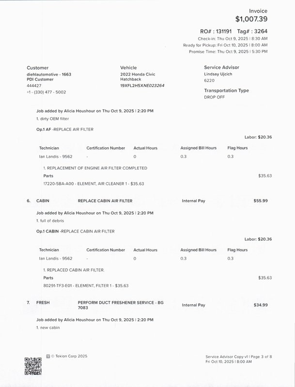 - Cabin air filter