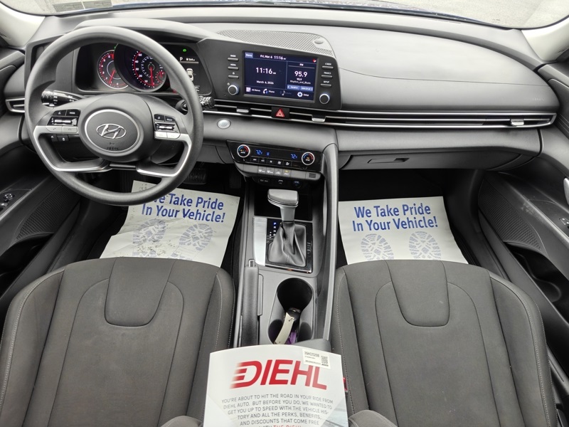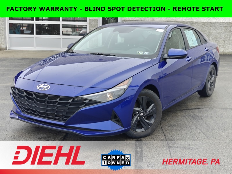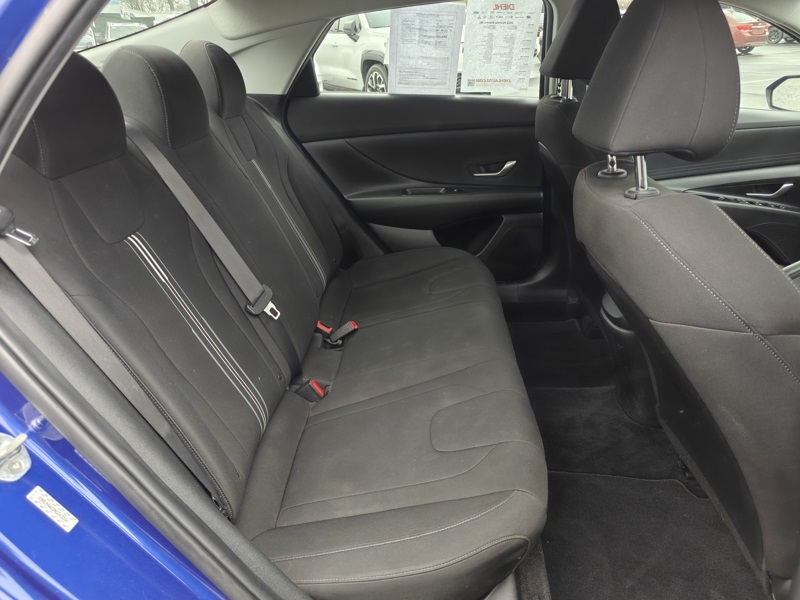**ONE OWNER**, **CLEAN CARFAX**, **LOCAL TRADE**, **ADAPTIVE CRUISE CONTRL**, **LANE KEEP ASSIST**, **BLIND SPOT DETECTION**, **BLUETOOTH**, **BACKUP CAMERA**, **ALLOY WHEELS**, ** REMOTE START**, **ANDROID AUTO**, **APPLE CARPLAY*, **HIGHWAY DRIVE ASSIST**, Elantra SEL, Intense Blue, Black Cloth, 4-Wheel Disc Brakes, ABS brakes, Apple CarPlay & Android Auto, Auto High-beam Headlights, Automatic temperature control, Cargo Block, Cargo Net, Cargo Package, Delay-off headlights, Exterior Parking Camera Rear, Front dual zone A/C, Fully automatic headlights, Option Group 01, Remote keyless entry, Reversible Cargo Tray, Steering wheel mounted audio controls, Telescoping steering wheel, Tilt steering wheel.