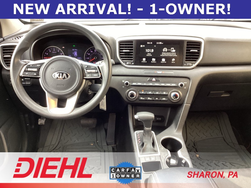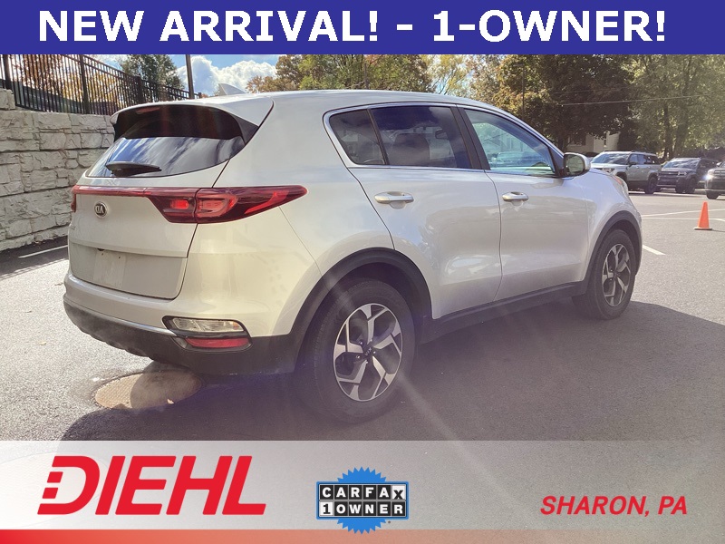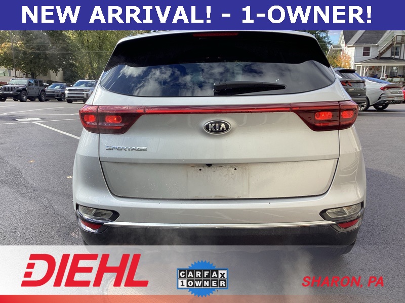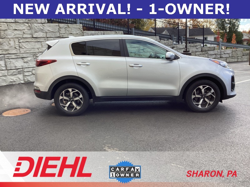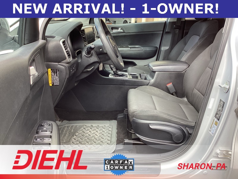 **ONE-OWNER**, **BACKUP CAMERA**, **APPLE CAR PLAY**, **ANDROID AUTO**, 17" Alloy Wheels, 4-Wheel Disc Brakes, 6 Speakers, 6-Way Manual Adjustable Driver's Seat, ABS brakes, Air Conditioning, Alloy wheels, AM/FM radio, Apple CarPlay & Android Auto, Auto High-beam Headlights, Axle Ratio: 3.064, Brake assist, Bumpers: body-color, Carpeted Floor Mats, Cloth Seat Trim, Delay-off headlights, Driver door bin, Driver vanity mirror, Dual front impact airbags, Dual front side impact airbags, Electronic Stability Control, Exterior Parking Camera Rear, Four wheel independent suspension, Front anti-roll bar, Front Bucket Seats, Front Center Armrest, Front reading lights, Fully automatic headlights, Illuminated entry, Low tire pressure warning, Occupant sensing airbag, Outside temperature display, Overhead airbag, Overhead console, Panic alarm, Passenger door bin, Passenger vanity mirror, Power door mirrors, Power steering, Power windows, Radio: AM/FM Audio System, Rear anti-roll bar, Rear seat center armrest, Rear window defroster, Rear window wiper, Remote keyless entry, Security system, Speed control, Speed-sensing steering, Split folding rear seat, Spoiler, Steering wheel mounted audio controls, Tachometer, Telescoping steering wheel, Tilt steering wheel, Traction control, Trip computer, Variably intermittent wipers. Sparkling Silver 2022 Kia Sportage LX FWD 6-Speed Automatic Electronic with Overdrive 2.4L I4 DGI DOHC 16V