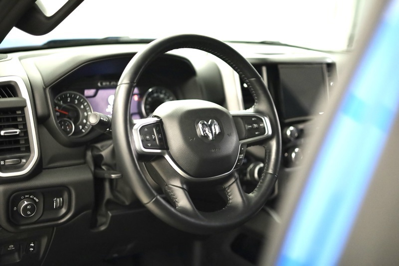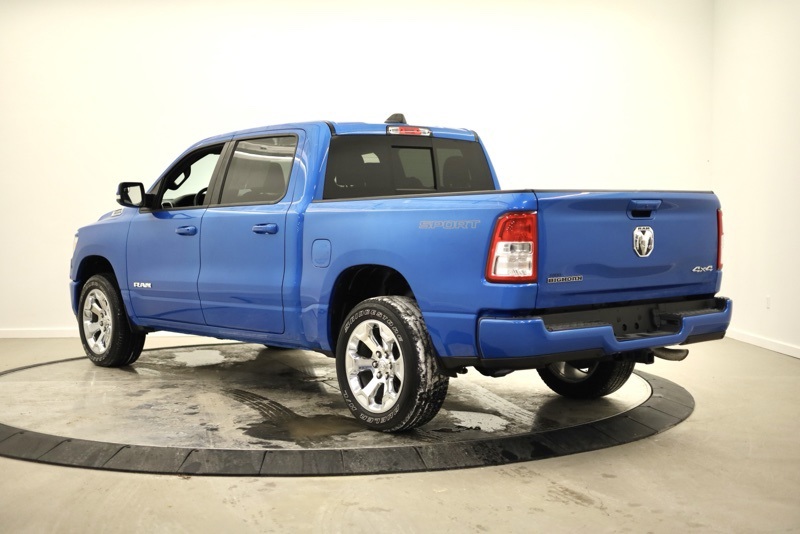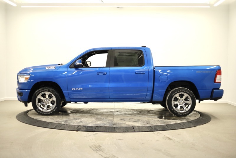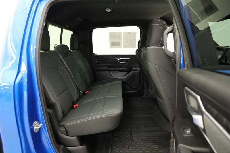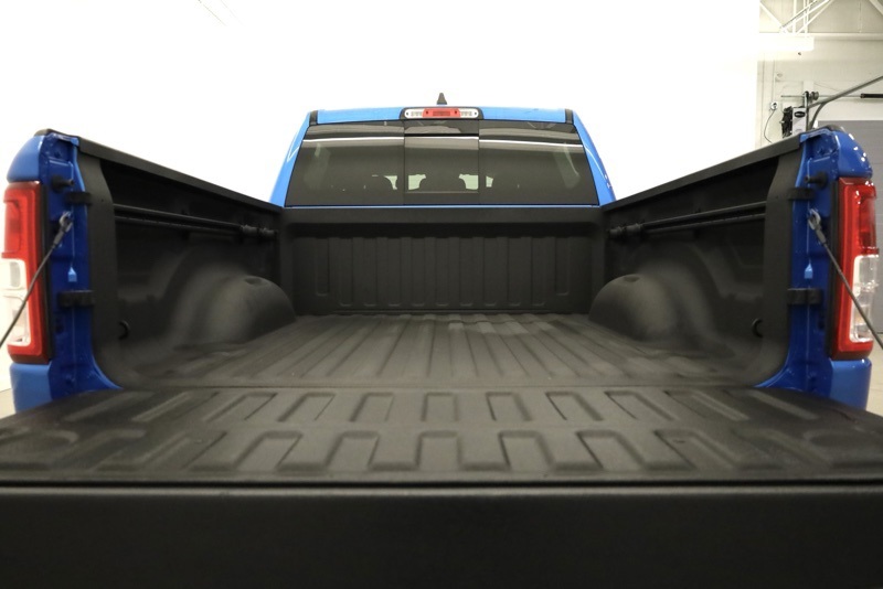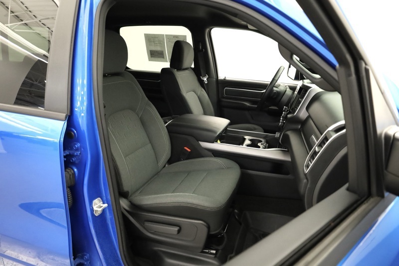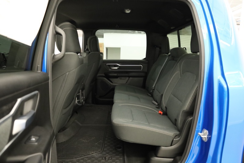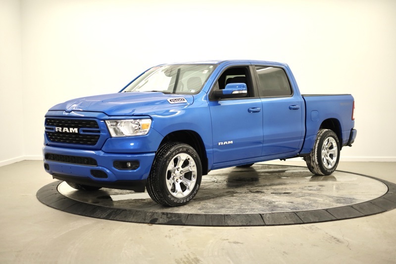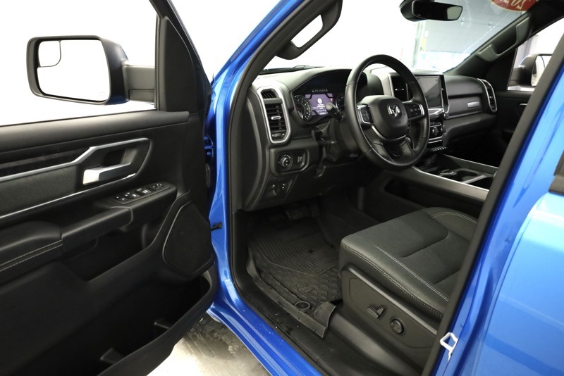 **SPORT APPEARANCE PACKAGE**, **FACTORY SPRAY IN LINER**, **BIGHORN LEVEL 2**, **APPLE CARPLAY / ANDROID AUTO**, **HEATED FRONT SEATS**, **HEATED STEERING WHEEL**, **FRONT AND REAR PARKING SONAR**, **FACTORY REMOTE START**, **ALPINE PREMIUM SOUND**, **8.4" TOUCHSCREN RADIO**, **20" CHROME CLAD WHEELS**, 115V Auxiliary Power Outlet, 115V Auxiliary Rear Power Outlet, 2nd Row In Floor Storage Bins, 3 Rear Seat Head Restraints, 4 Way Front Headrests, 400W Inverter, 4G LTE Wi-Fi Hot Spot, 8.4" Touchscreen Display, Air Conditioning ATC w/Dual Zone Control, All Plant-Installed Decals, All R1 High Radios, All Radio Equipped Vehicles, Apple CarPlay, Auto-Dimming Exterior Driver Mirror, Auto-Dimming Rear-View Mirror, Bed Utility Group, Big Horn Badge, Big Horn Level 2 Equipment Group, Black Exterior Mirrors, Black Interior Accents, Black Premium Power Mirrors, Bluetooth Handsfree Phone & Audio, Body Color Exterior Mirrors, Body Color Front Bumper, Body Color Premium Power Mirrors, Body Color Rear Bumper w/Step Pads, Bridgestone Brand Tires, Bucket Seats, Class IV Receiver Hitch, Cluster 7.0" TFT Color Display, Connected Travel & Traffic Services, Connectivity - US/Canada, Convex Wide-Angle Mirror Insert, Delete LED Lamp - Floor Console Bin, Deluxe Cloth Bucket Seats, Disassociated Touchscreen Display, Exterior Mirrors Courtesy Lamps, Exterior Mirrors w/Heating Element, Exterior Mirrors w/Supplemental Signals, For Details, Visit DriveUconnect.com, Front Seat Back Map Pockets, Full Length Floor Console, Global Telematics Box Module (TBM), Glove Box Lamp, Google Android Auto, GPS Antenna Input, GPS Navigation, HD Radio, Heated Front Seats, Heated Steering Wheel, Integrated Center Stack Radio, Integrated Voice Command w/Bluetooth, Manual Adjust 4-Way Front Passenger Seat, Media Hub w/2 Charge Only USBs, MOPAR 4 Adjustable Cargo Tie-Down Hooks, MOPAR Deployable Bed Step, MOPAR Spray In Bedliner, ParkSense Front/Rear Park Assist w/Stop, Pick-Up Box Lighting, Power 2-Way Driver Lumbar Adjust, Power 8-Way Driver Seat, Power Adjustable Pedals, Power-Folding Mirrors, Quick Order Package 23Z Big Horn, Radio: Uconnect 5 Nav w/8.4" Display, Rear 60/40 Folding Seat, Rear Center Armrest, Rear Dome w/On/Off Switch Lamp, Rear Power Sliding Window, Rear Window Defroster, Remote Start System, Security Alarm, SiriusXM Radio Service, SiriusXM Satellite Radio, SiriusXM w/360L, Sport Appearance Package, Sport Decal, Sun Visors w/Illuminated Vanity Mirrors, Universal Garage Door Opener, USB Host Flip. CARFAX One-Owner. Hydro Blue Pearlcoat 2022 Ram 1500 Big Horn/Lone Star 4WD 8-Speed Automatic 3.6L V6 24V VVT