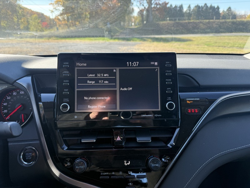 **ALL WHEEL DRIVE**, **BLUETOOTH HANDS FREE PHONE**, **LEATHER**, **BACK-UP CAMERA**, **CLEAN CARFAX ONE OWNER**, **19" ALLOY WHEELS**, **HEATED FRONT SEATS**, **HEATED STEERING WHEEL**, **9"TOUCHSCREEN RADIO**, **PRE COLLISION SYSTEM**, **ADAPTIVE CRUISE CONTROL**, **LANE KEEP ASSIST**, **BLIND SPOT DETECTION**, **APPLE CARPLAY / ANDROID AUTO**, Black w/Fabric Seat Trim w/Sport SofTex, 4-Wheel Disc Brakes, 6 Speakers, ABS brakes, Air Conditioning, All-Weather Floor Liner Package (TMS), Alloy wheels, AM/FM radio: SiriusXM, Apple CarPlay/Android Auto, Auto High-beam Headlights, Auto-dimming Rear-View mirror, Automatic temperature control, Brake assist, Bumpers: body-color, Cold Weather Package, Delay-off headlights, Driver door bin, Driver vanity mirror, Dual front impact airbags, Dual front side impact airbags, Electronic Stability Control, Emergency communication system: Safety Connect with 1-year trial, Exterior Parking Camera Rear, Four wheel independent suspension, Front anti-roll bar, Front Bucket Seats, Front Center Armrest, Front dual zone A/C, Front reading lights, Fully automatic headlights, Garage door transmitter: HomeLink, Heated door mirrors, Heated front seats, Heated Steering Wheel, Illuminated entry, Knee airbag, Low tire pressure warning, Multi-Stage Heated Front Bucket Seats, Occupant sensing airbag, Outside temperature display, Overhead airbag, Overhead console, Panic alarm, Panoramic Glass Roof, Passenger door bin, Passenger vanity mirror, Perforated Leather Seat Trim, Power door mirrors, Power driver seat, Power passenger seat, Power steering, Power windows, Radio data system, Radio: AM/FM/HD Audio Plus, Rear anti-roll bar, Rear reading lights, Rear seat center armrest, Rear side impact airbag, Rear window defroster, Remote keyless entry, Security system, Speed control, Speed-sensing steering, Split folding rear seat, Spoiler, Steering wheel mounted audio controls, Tachometer, Telescoping steering wheel, Tilt steering wheel, Traction control, Trip computer, Turn signal indicator mirrors, Variably intermittent wipers, Wheel Locks (TMS), Wheels: 8.0J x 19" Black Machined-Finish Alloy. Recent Arrival! CARFAX One-Owner. Clean CARFAX. Predawn Gray Mica 2022 Toyota Camry XSE AWD 8-Speed Automatic 2.5L I4 DOHC 16V