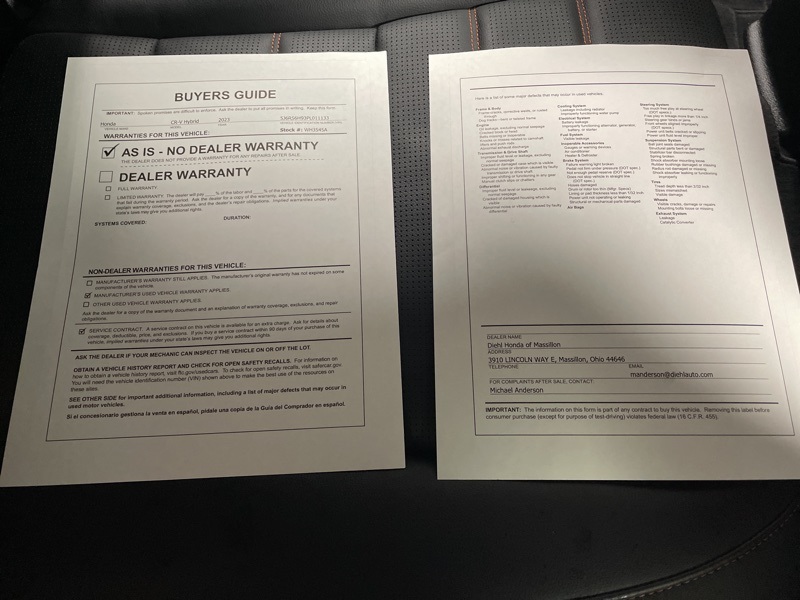 - HondaLink Remote (3 months complimentary) vehicle tracker